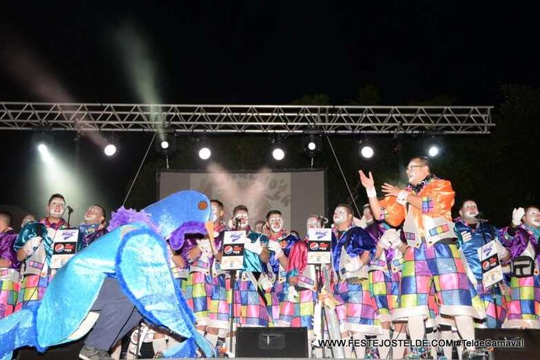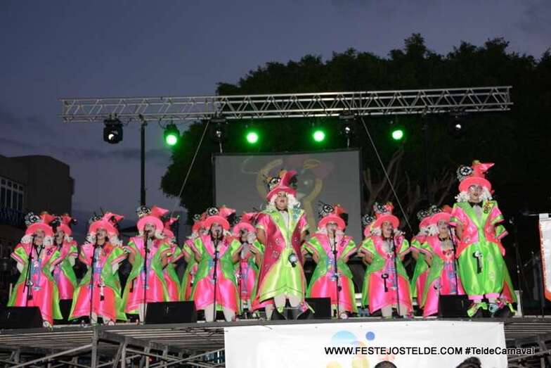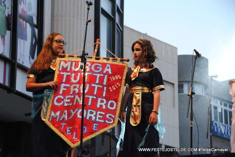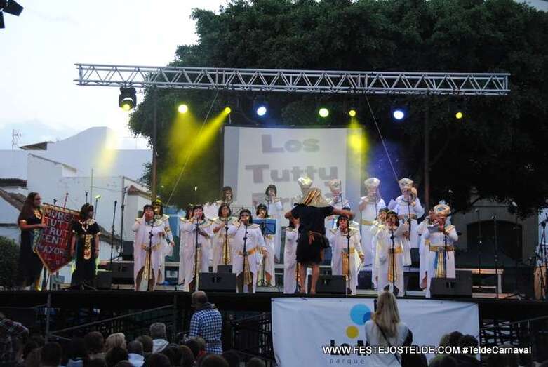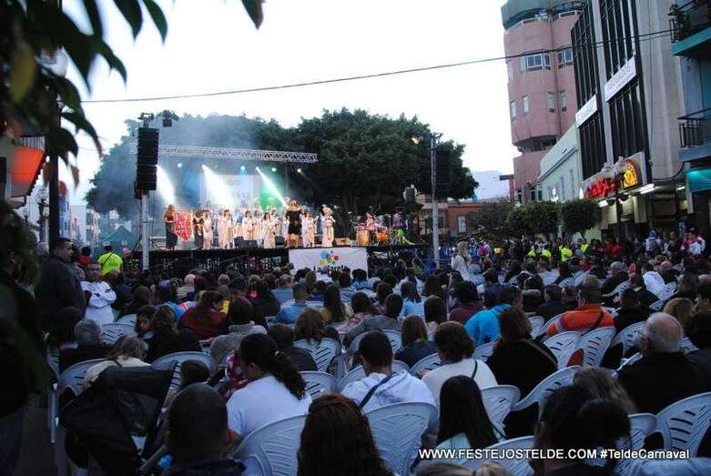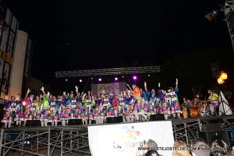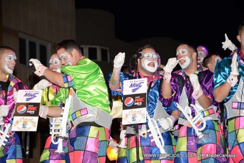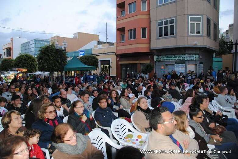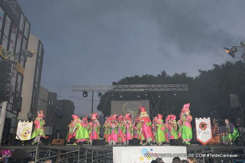El evento que arrancó minutos después de las 19.00 horas con la animación callejera de la batucada Piratas del Caribe acogió en su primera parte las intervenciones desde el escenario de las agrupaciones Tutti-Frutti, del Centro de Mayores de Telde, Las golisnionas y de Los chacho tú. Cada una de estas murgas estuvo en el escenario durante una media hora aproximadamente. Esta primera parte del acto estuvo presentada por el dj teldense Nacho González