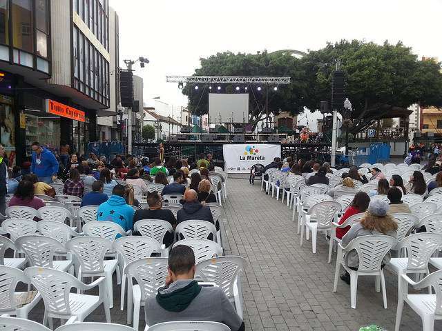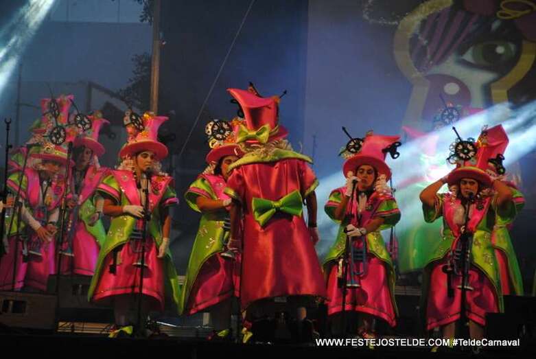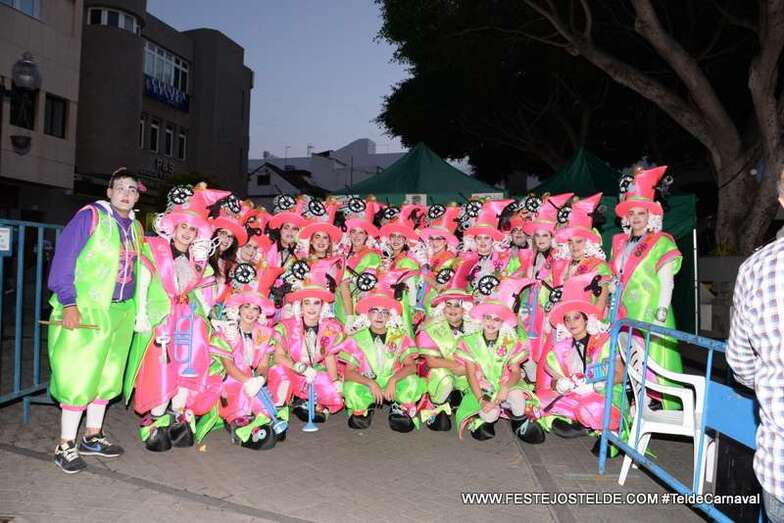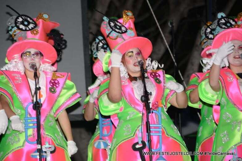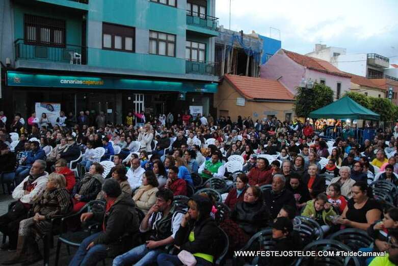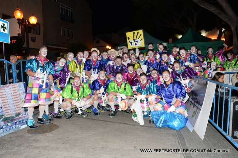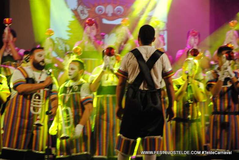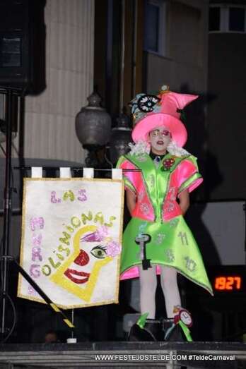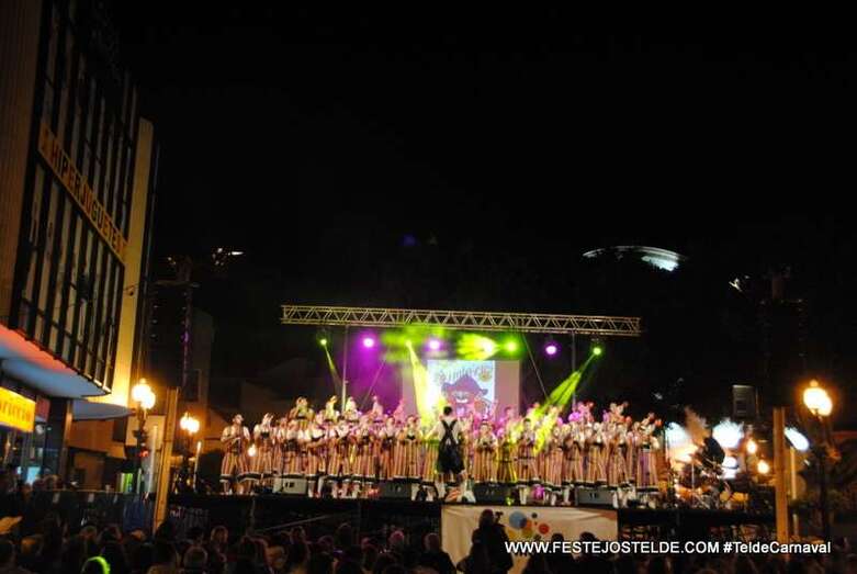El evento que arrancó minutos después de las 19.00 horas con la animación callejera de la batucada Piratas del Caribe acogió en su primera parte las intervenciones desde el escenario de las agrupaciones Tutti-Frutti, del Centro de Mayores de Telde, Las golisnionas y de Los chacho tú. Cada una de estas murgas estuvo en el escenario durante una media hora aproximadamente. Esta primera parte del acto estuvo presentada por el dj teldense Nacho González