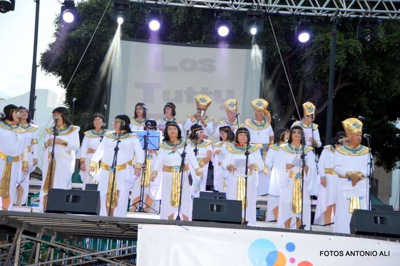 El entorno de la plaza de Los Llanos de Telde acogió esta tarde-noche con una nutrida asistencia de pública un encuentro regional de murgas con el que se pone fin al Carnaval de la ciudad, dedicado al antiguo Egipto.