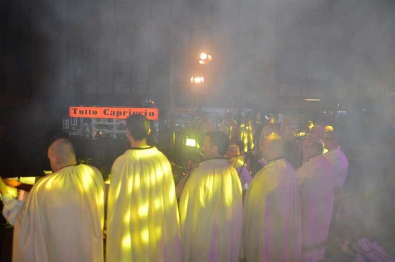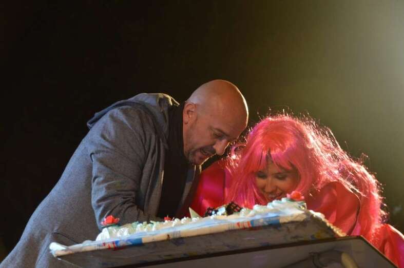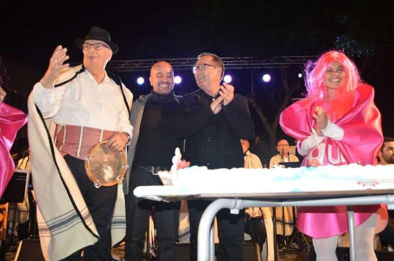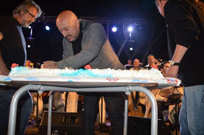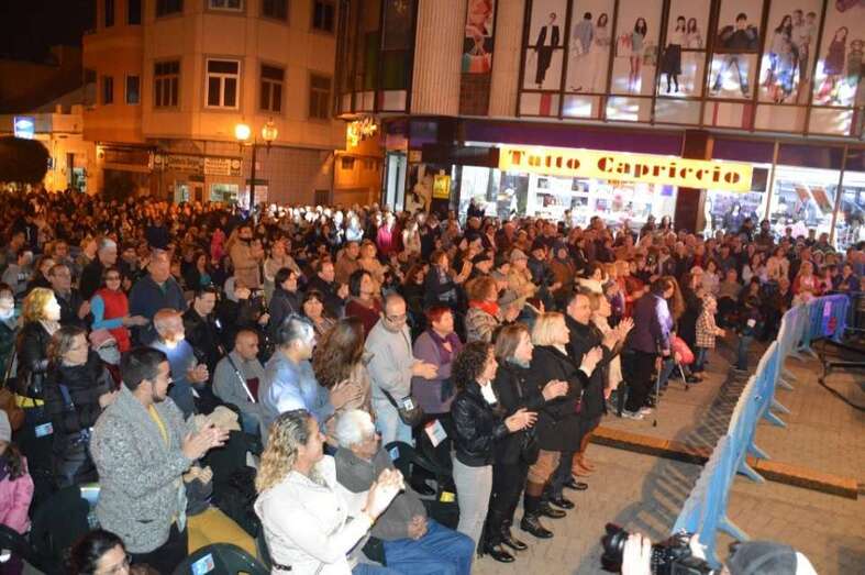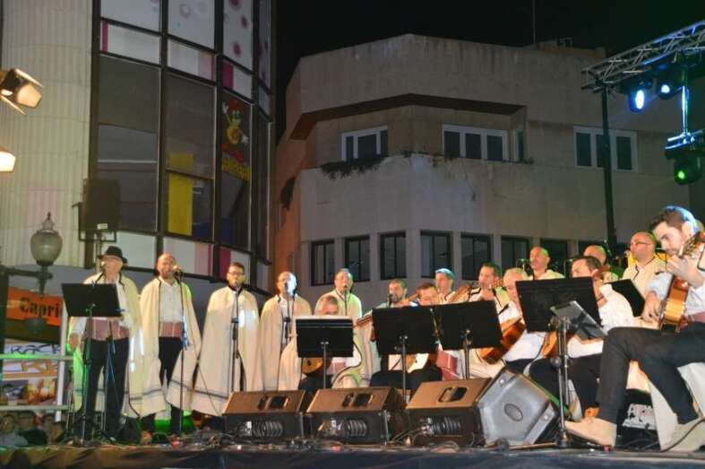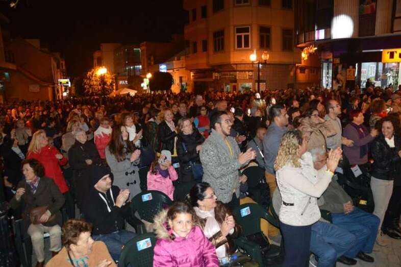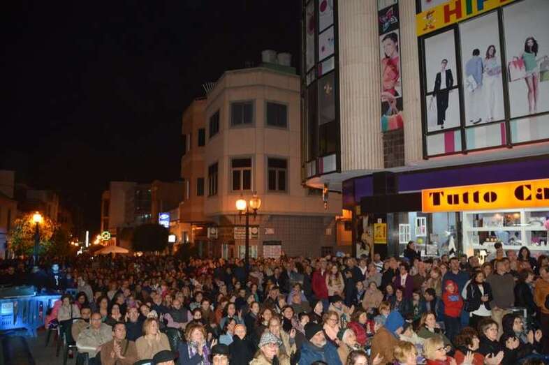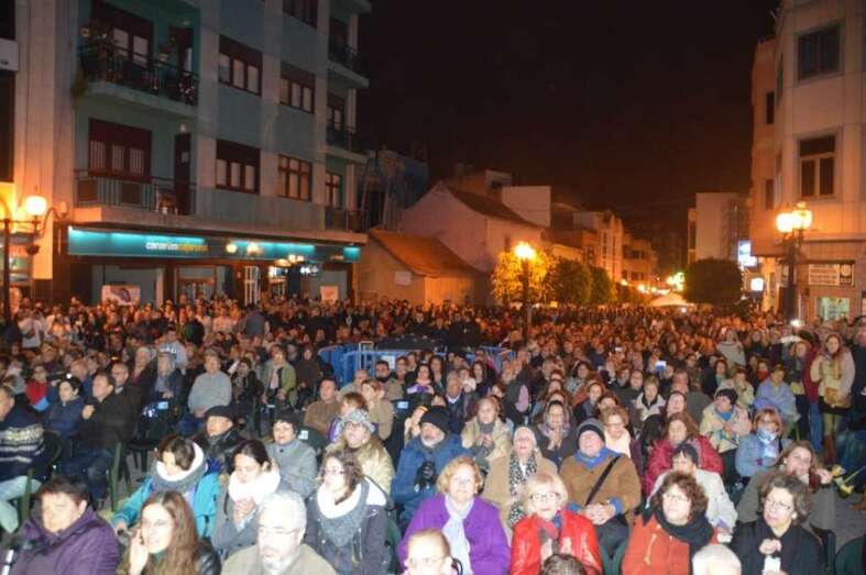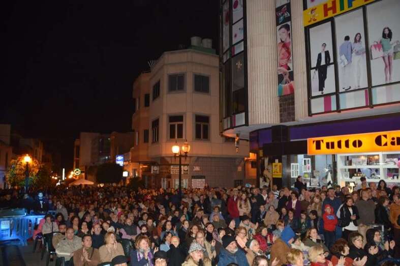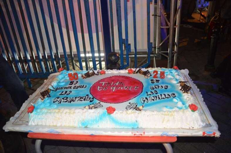 El gran atractivo de la noche fue el gran espectáculo, único y gratuito en el entorno de la plaza pública donde dos de los grupos más señeros de la historia musical de Canarias, Los Sabandeños y Los Coquillos, comparteron el mismo escenario en una misma noche. Estaba previsto que interpretaran el famoso tema Hasta el Amanecer, composición que elevó a la fama al segundo grupo y que se ha convertido en himno de muchas fiesgtas y parrandas en Canarias, pero finalmente fue el pasodoble Islas Canarias al que dieron rienda suelta los miembros del grupo folclórico y el cantante de Los Coquillos, Ginés Cedrés, quien regaló a Los Sabandeños en nombre de su banda dos botellas de vino cosechado en Gran Canaria y un libro, mientras que la organización les sorprendió con una gran tarta por los 50 años de la agrupación que dirige Elfidio Alonso y los 25 de Los Coquillos.