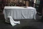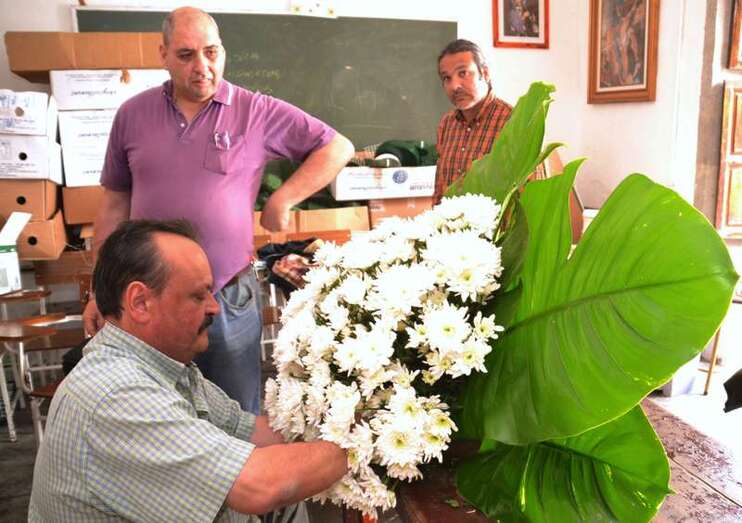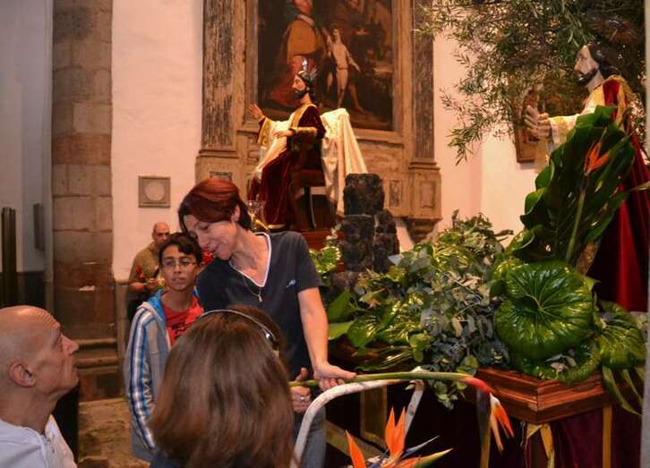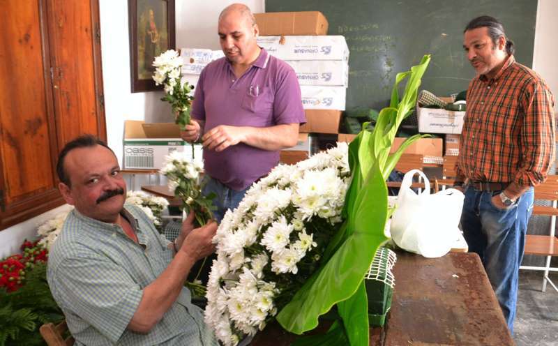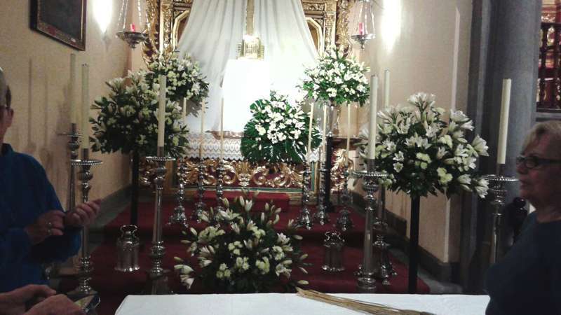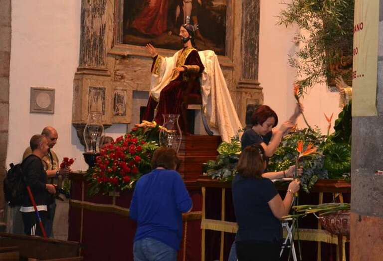 A primera hora de la mañana, el trajineo era ya constante en la Iglesia de San Juan. Un grupo de voluntarios comandados por el sacristán Juan Santana y los también decoradores Cristo Naranjo, Segundo Amador, Mari Tere Flores y Cristo Valido se afanaban este jueves por dejar todo a punto para el día grande de esta festividad religiosa.