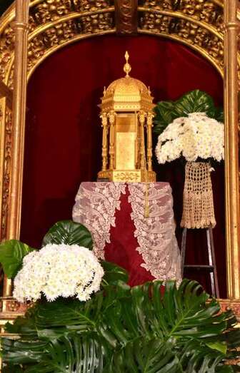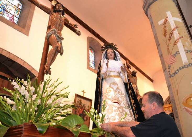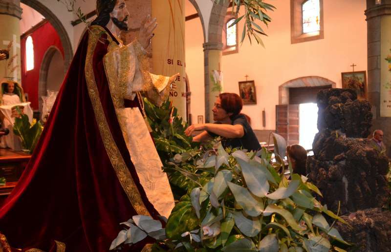 Telde.- Telde ya vive con intensidad la Semana Santa. A pocas horas del día en que se conmemora la Pasión de Cristo, los templos del municipio lucen sus mejores galas y adornos florales. En la Basílica de San Juan, epicentro de la celebración religiosa en la ciudad, varios grupos de colaboradores trabajan a destajo para decorar los ocho pasos que mañana recorrerán en procesión el casco del barrio.