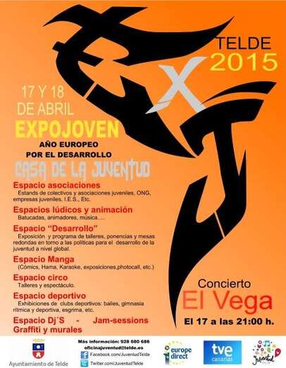 Telde.- El Ayuntamiento de Telde organizará este año una nueva edición de la muestra Expojoven. Una feria dedicada a los colectivos y asociaciones juveniles del municipio que se celebrará entre los días 10 y 18 de abril en la Casa de la Juventud, en San Gregorio. El plato fuerte tendrá lugar el 17 de abril con un concierto del cantante canario El Vega.