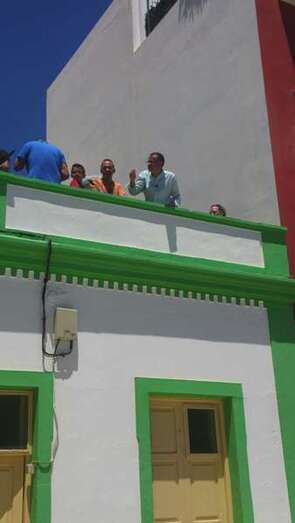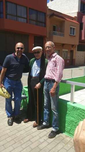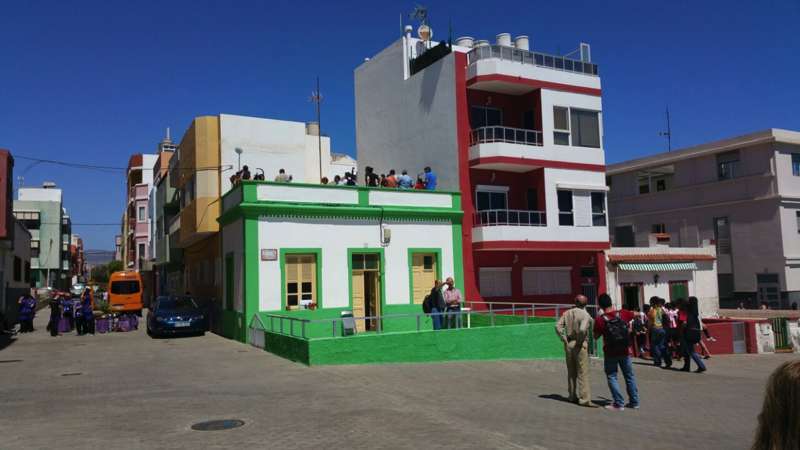 Telde.- El programa televisivo La azotea de Calero de TVE en Canarias visitó este sábado la casa del teldense Juan Gómez en Clavellinas con la participación del dúo cómico Piedra Pómez, el sacerdote José Ruiz (antiguo cura del barrio), el equipo de fútbol C.F. Unión Marina, representantes del colectivo Meclasa, Juan Franco (creador del callejero de la ciudad) y otros vecinos del municipio.