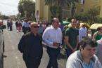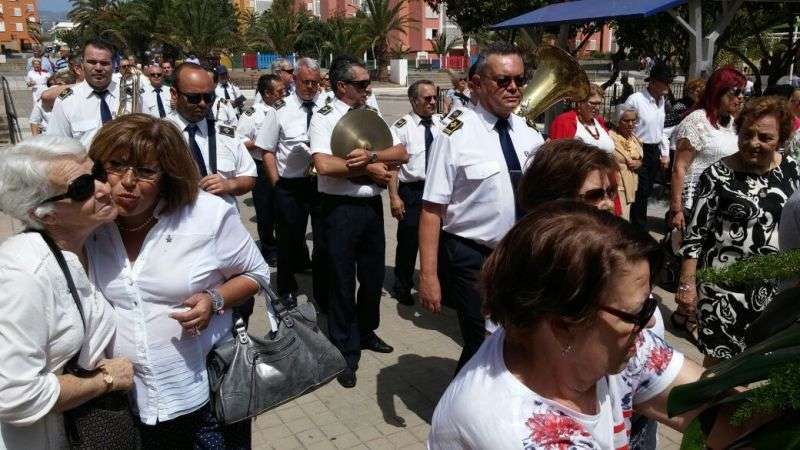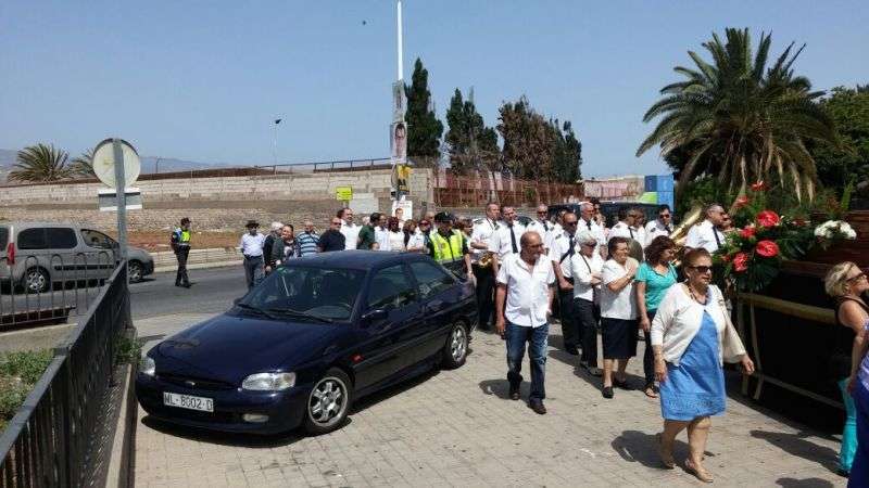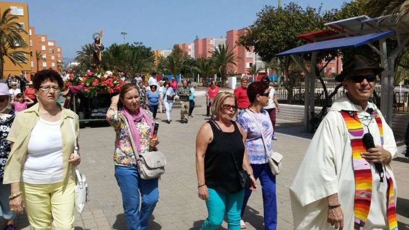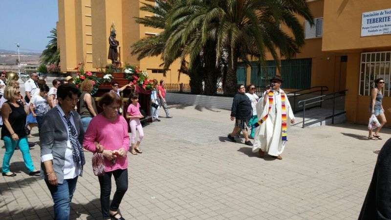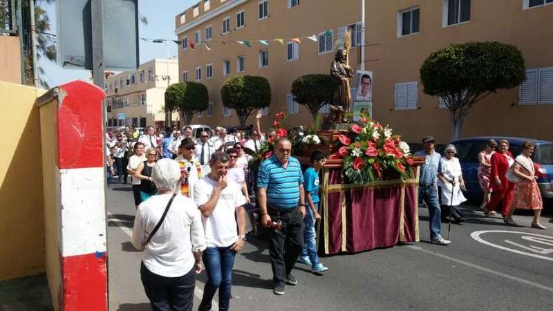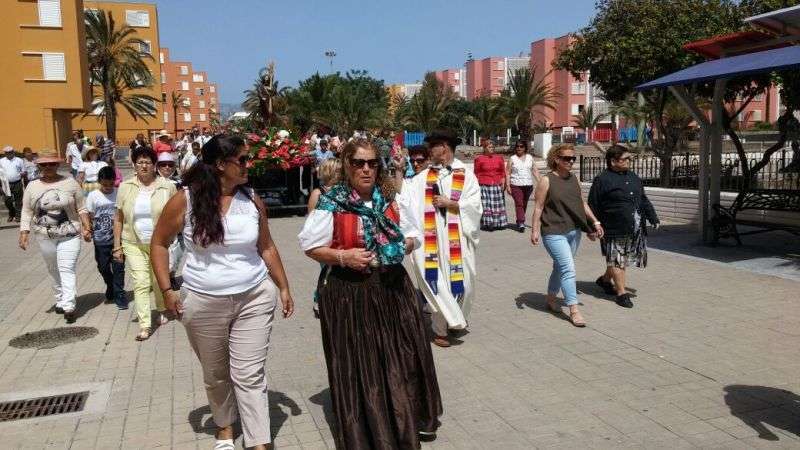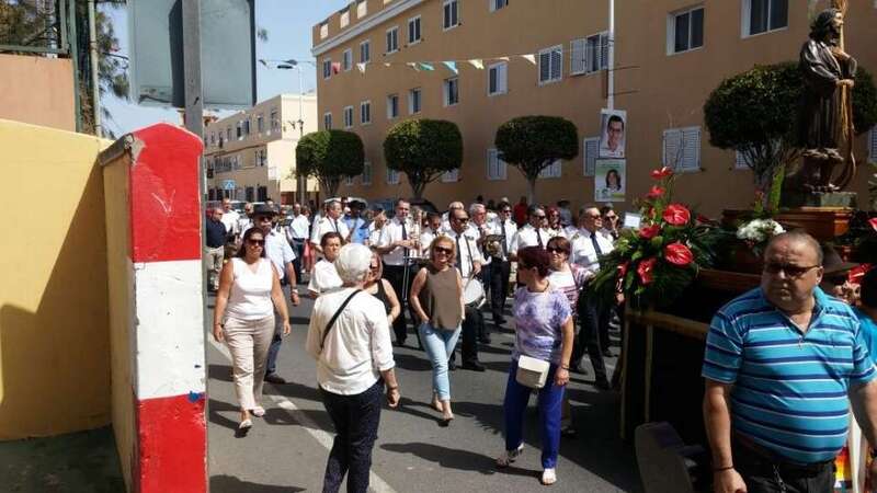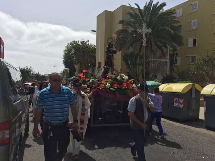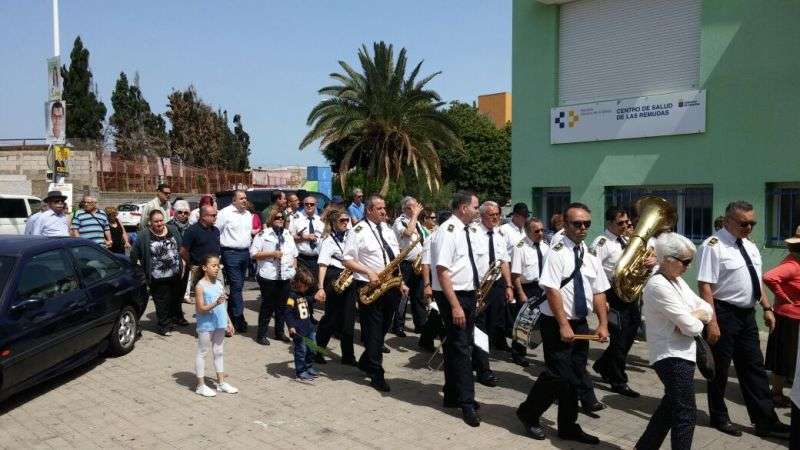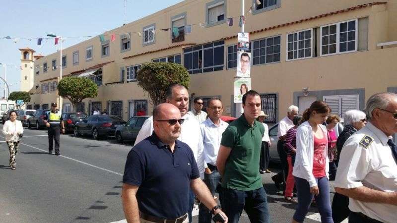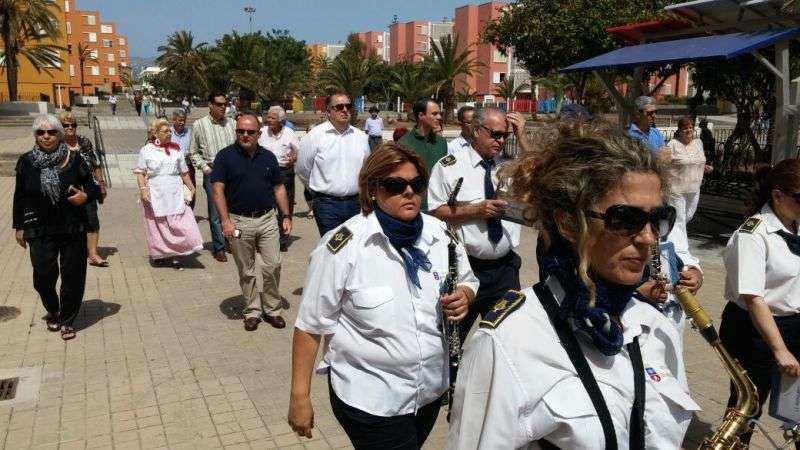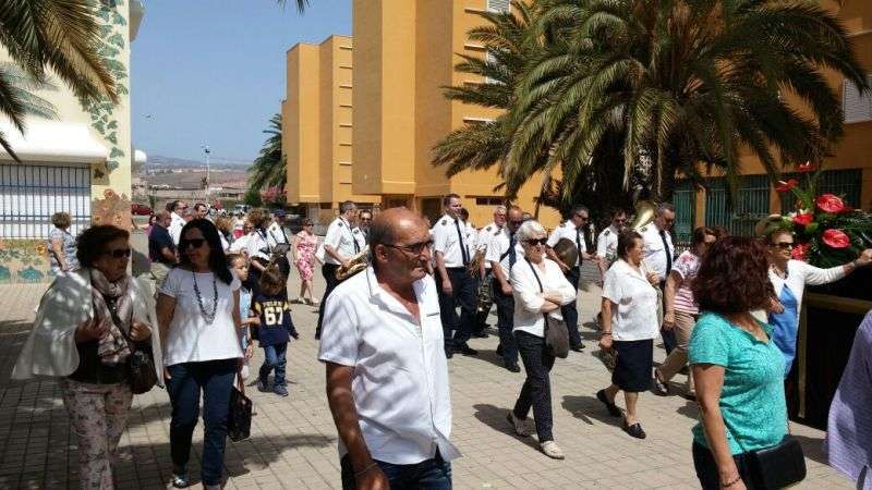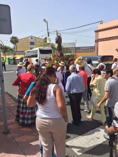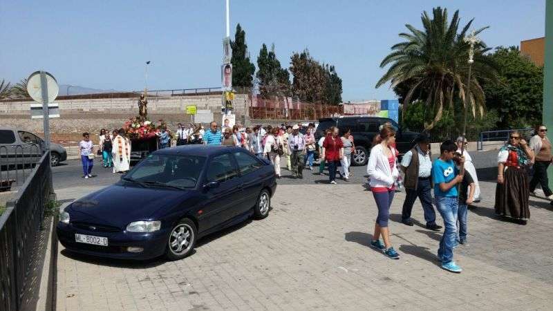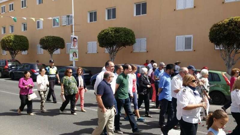 La comitiva religiosa partió desde el tempo de La Pardilla poco después de las 11.15 horas, acompañada por un reducido grupo de vecinos y la Banda Municipal de Música de Telde. Entre los asistentes se encontraban el concejal de Gobierno, Juan Martel, candidato por el CCD a a la Alcaldía, así como otros miembros de su lista electoral. Tambien acudieron varios candidatos de Nueva Canarias.