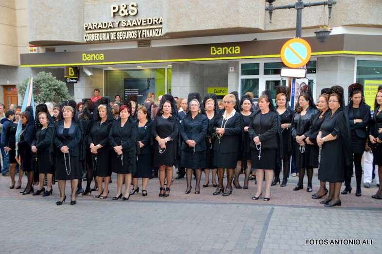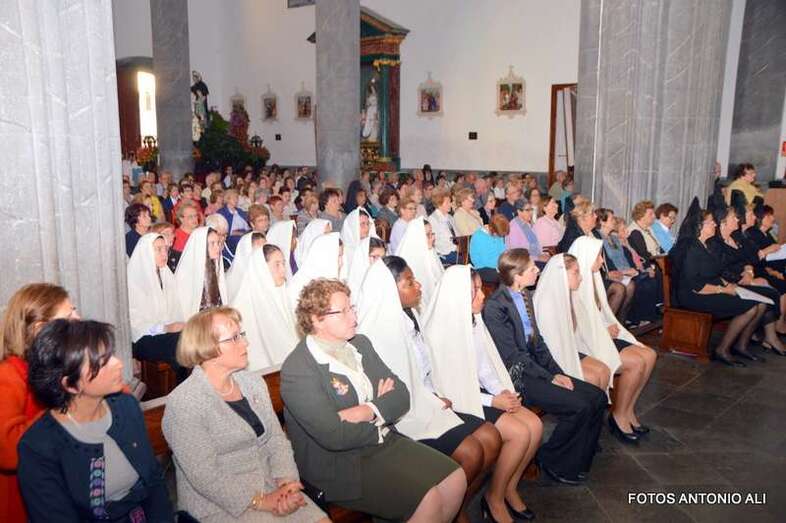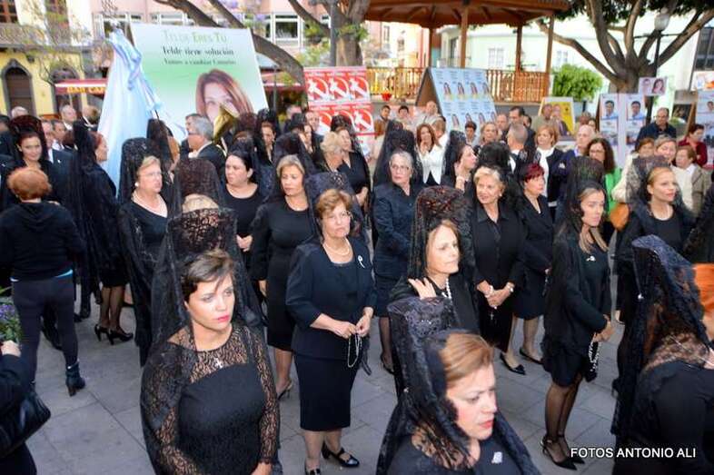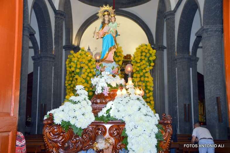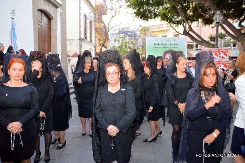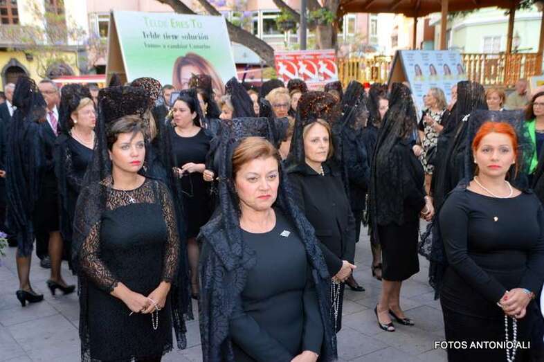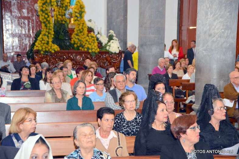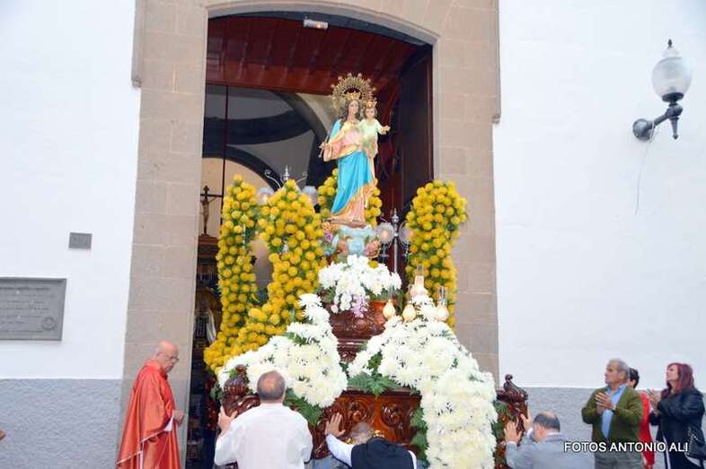 Con sus estandartes y banderas, la comitiva religiosa que organiza anualmente la comunidad salesiana de Telde desde más de 60 años, abrió sus puertas en 1949, contó con el acompañamiento de cientos de devotos y de alumnos del colegio, además de por más de decenas de mantillas de varias generaciones.