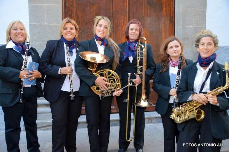 Ya dentro del colegio, las veneradas imágenes fueron recibidas entre vítores y aplausos. Como broche final, la Banda Municipal de Música de Telde interpretó el himno a María Auxiliadora.