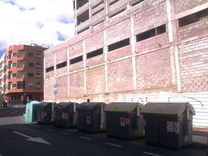 Los residentes critican, además que en estos contenedores, ubicados en la calle de Luis González, junto la fachada oriental del inacabado Palacio de la Cultura y de las Artes, se suele depositar restos de comida de los locales cercanos, por lo que reclaman una limpieza más frecuente de estos recipientes.