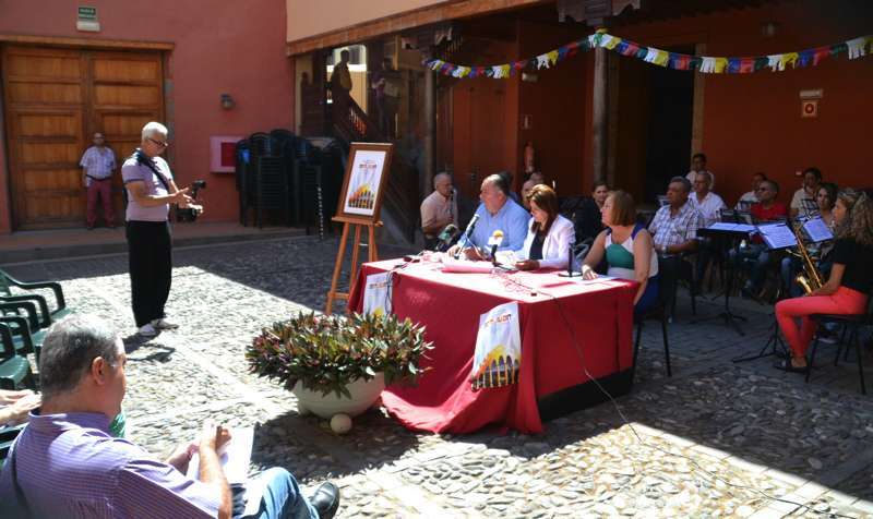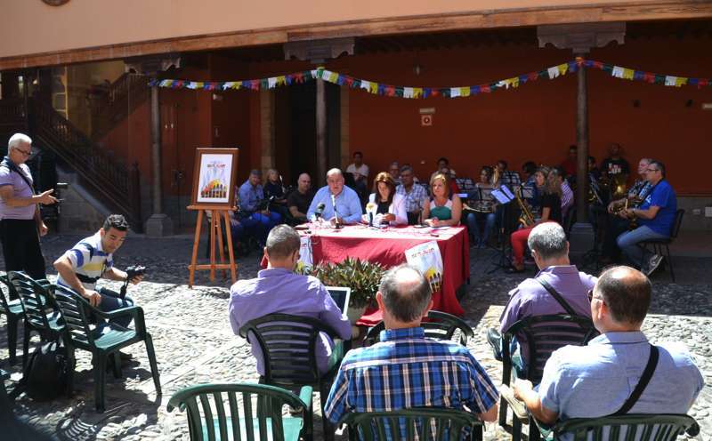 La Banda Municipal de Música estuvo presente este jueves en la rueda de prensa de presentación del programa y adelantó algunos de los temas que han incluido en el pregón, como es el caso del pasodobles Islas Canarias, que interpretó al finalizar el acto.