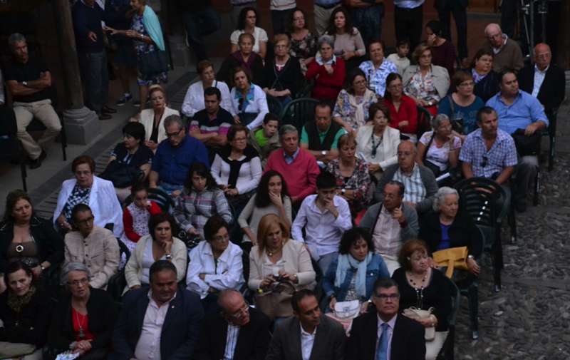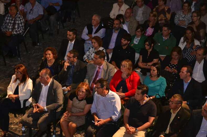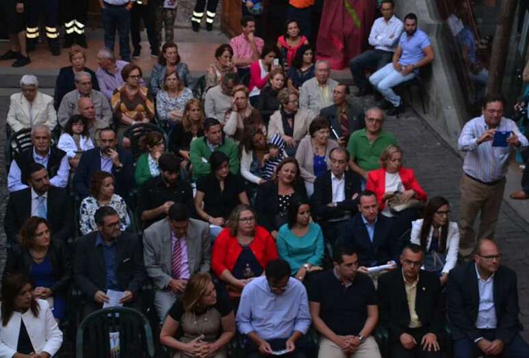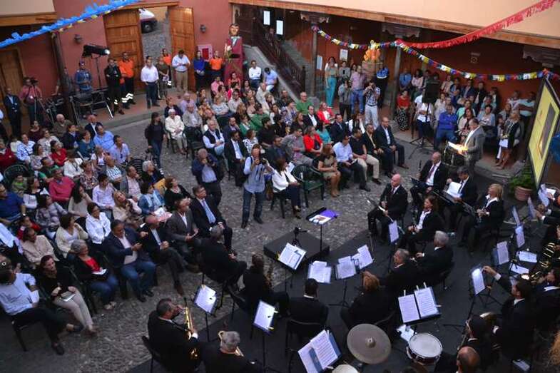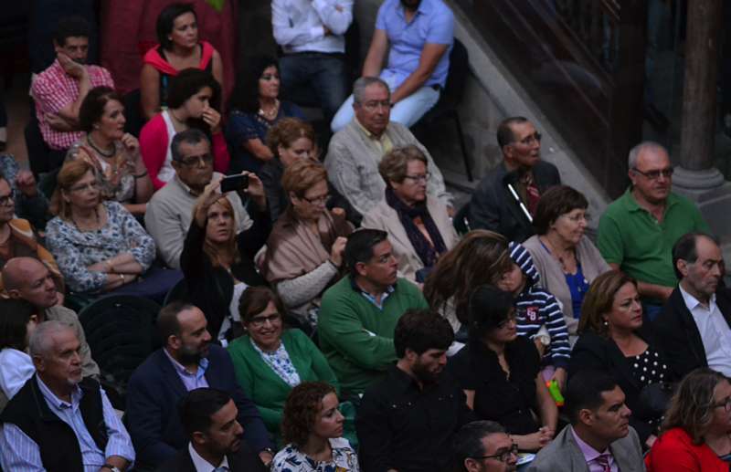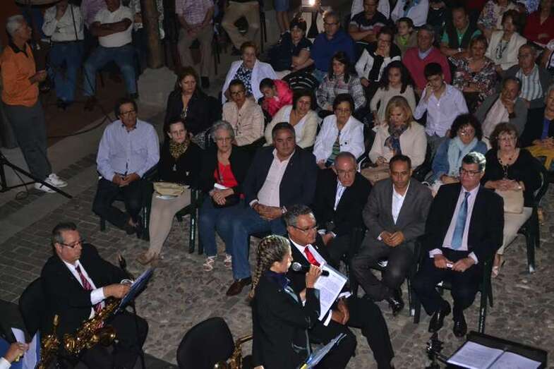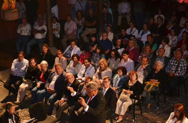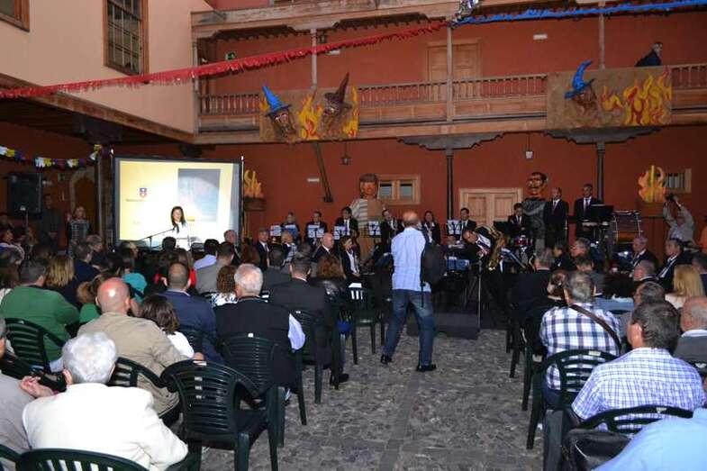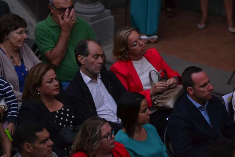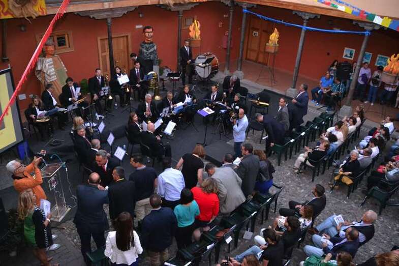 Cerca de 300 personas -entre ellas una amplia representación de la Corporación local con la alcaldesa Carmen Hernández al frente y con la práctica totalidad de su grupo de Gobierno presente, además de los consejeros en funciones del Cabildo Francisco Santana y Antonio Hernández Lobo, el cronista de la ciudad, Antonio María González Padrón; y el párroco José María Cabrera- se congregaron en el histórico inmueble de la calle Conde de la Vega Grande, en pleno corazón del barrio de San Juan, para escuchar el original y sonoro pregón que pronunciaron los 22 componentes de la Banda Municipal de Telde, invitando a la ciudadanía teldense y visitantes que en estos días acudan al municipio llegados desde otros puntos de la geografía grancanaria a participar “alegre y solidariamente” en estos festejos, “gritando para que resuene desde el mar a la cumbre”.