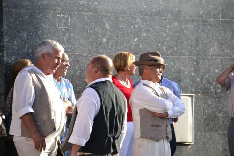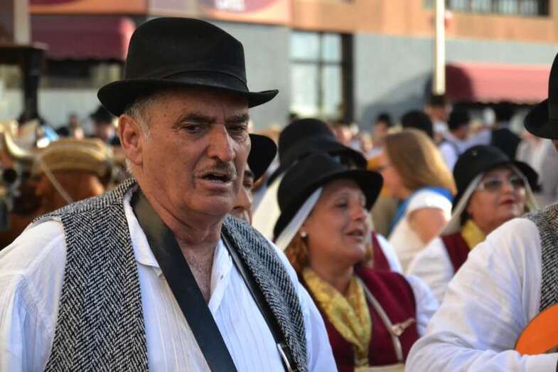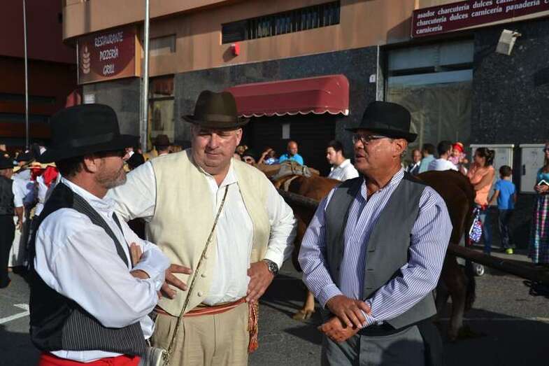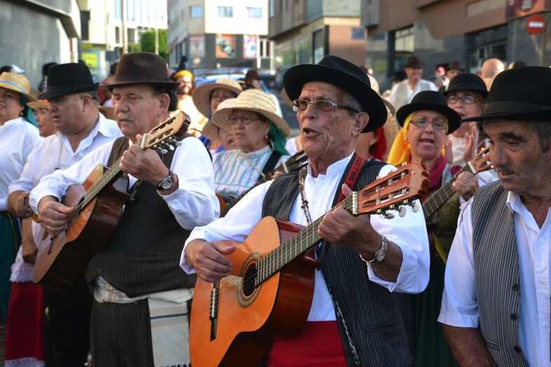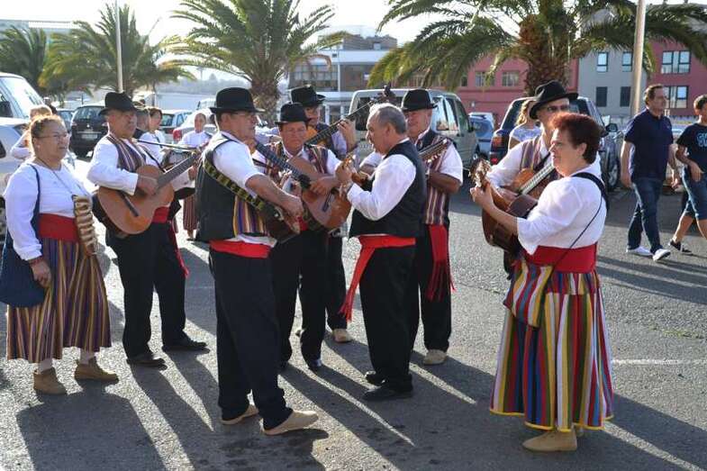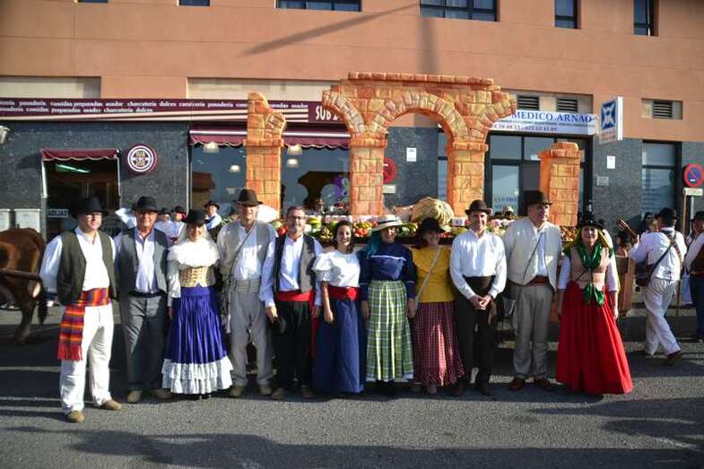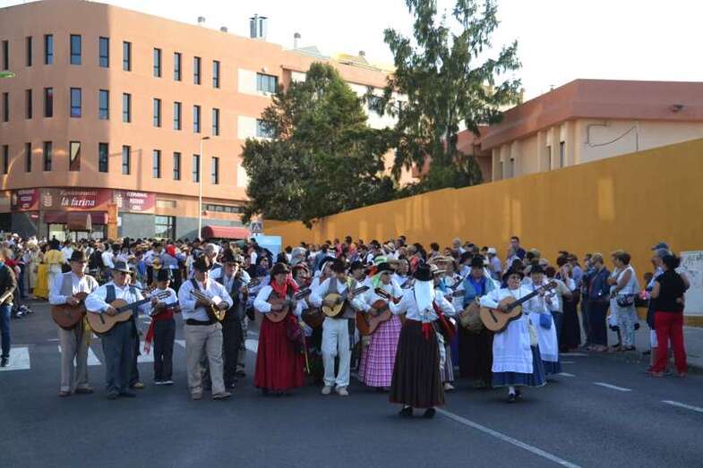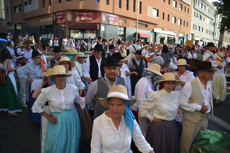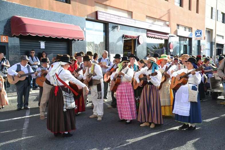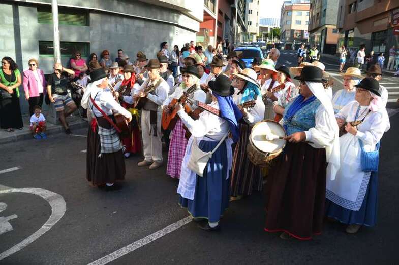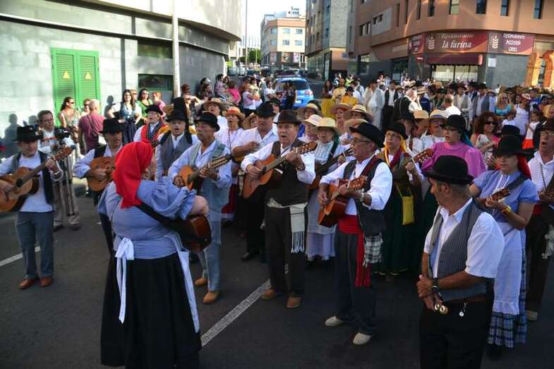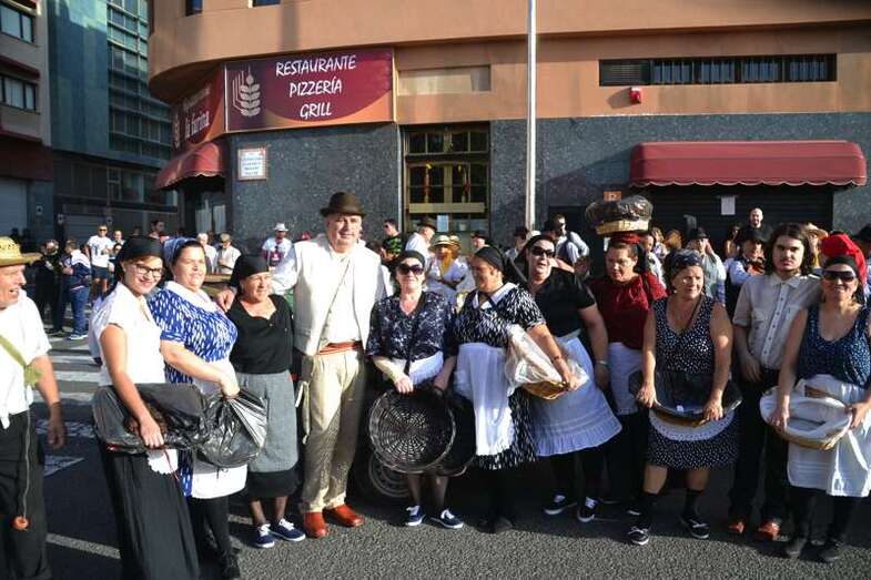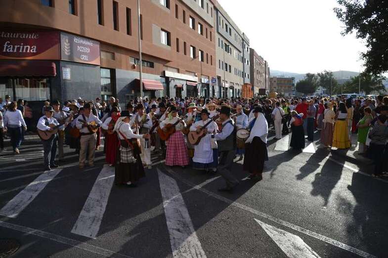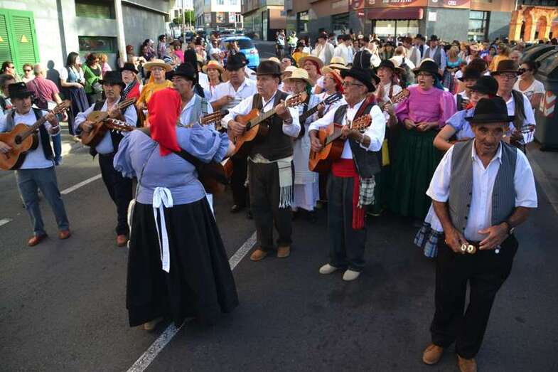 Ocho grupos folclóricos y sus respectivos cuerpos de baile - Meclasa y San Ramón Nonato; Parranda Taror; Centro de Mayores; Casas Nuevas y Roque de Gando; Tesey (Arinaga), Valdemontes y el Centro de Adultos de Jinámar; Tacoremi (Ingenio); A.V. Cristo de Telde, La Candelaria (Tara), Harimaguada (Lomo Los Frailes) y Los Melones (La Garita); Roque Azucarero; y El Molinillo y Punto y Seguido con la asociación de comerciantes del Mercado Municipal- amenizaron la festiva comitiva en la que también participó una nutrida representación de la Corporación municipal, encabezada por la alcaldesa Carmen Hernández y su grupo de Gobierno prácticamente al completo, y que tuvo a Juan Antonio Peña y a Norberto Melián como únicos representantes de la oposición, así como la Banda Municipal de Música de Telde, pregoneros de los fastos; todos ellos ataviados con trajes típicos.