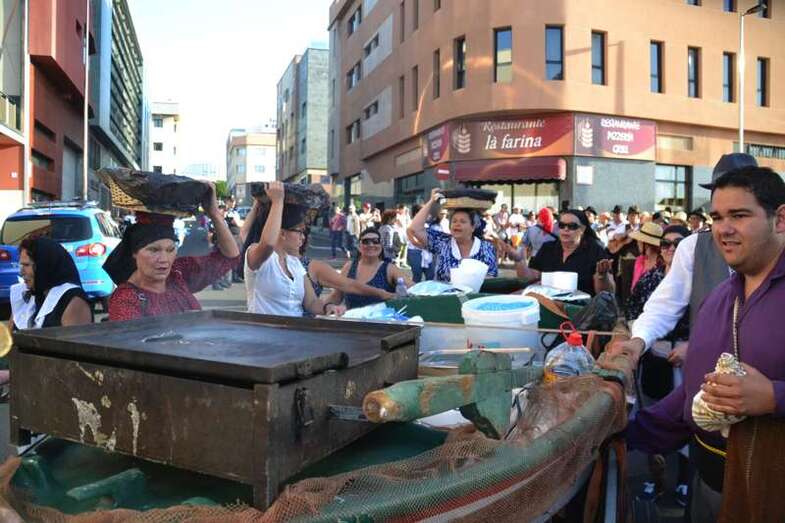 Telde.- El casco histórico de San Juan se vistió hoy de fiesta. La romería-ofrenda en honor del Santo patrón de la ciudad recorrió las calles del barrio, envolviéndolo en una vistosa jarana popular en la que no faltó la alegría, el parrandeo de las agrupaciones folclóricas y el pescadito fresco de la playa de Melenara.