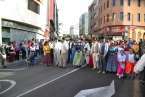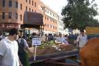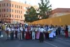 Uno a uno, los componentes de las ocho carretas fueron desfilando por la plaza pública cargados con los productos ofrendados y saludando al Santo, mientras las parrandas y grupos folclóricos actuaban para el público.