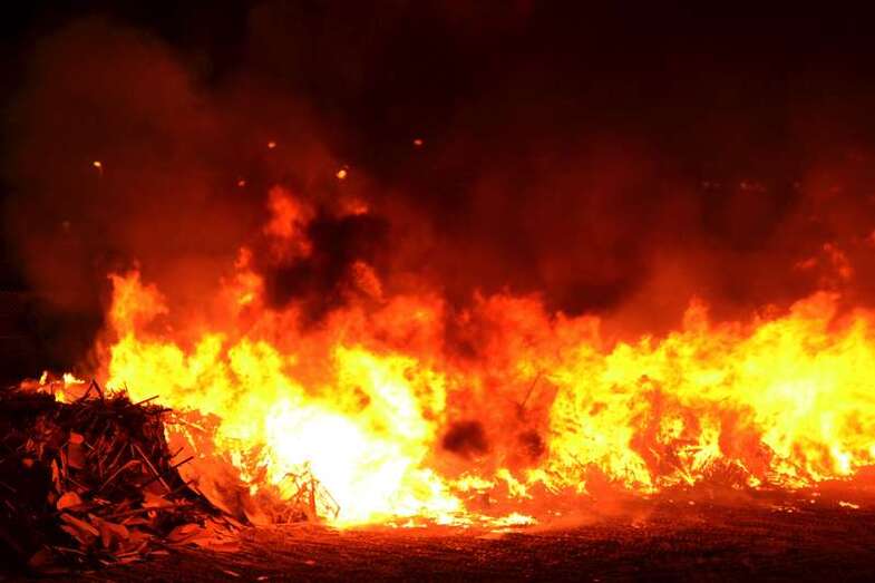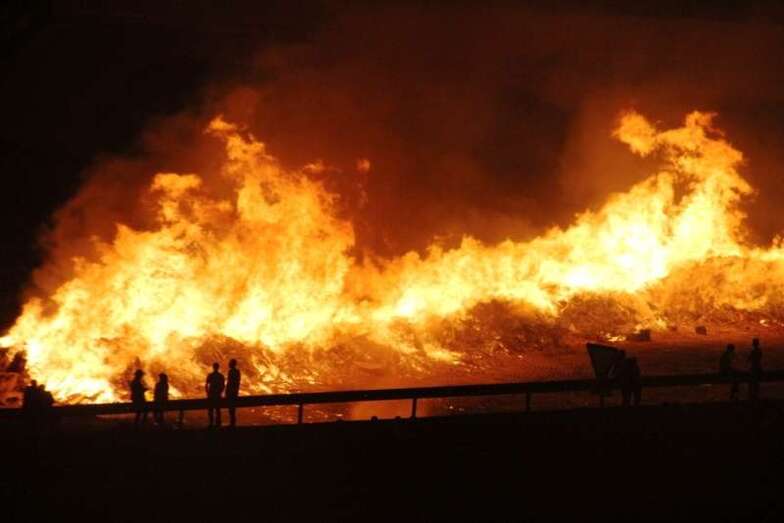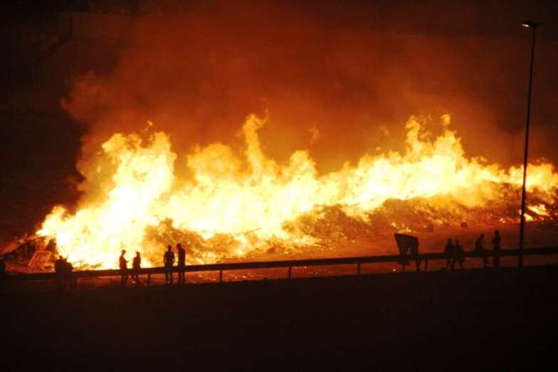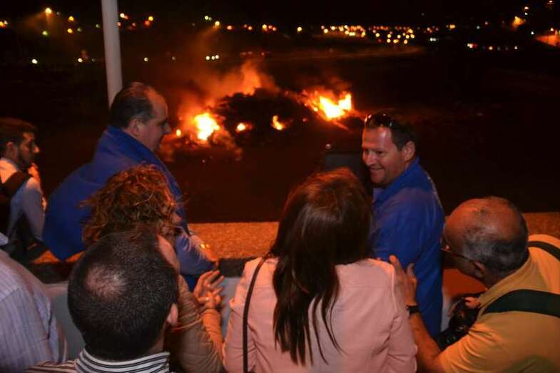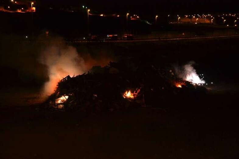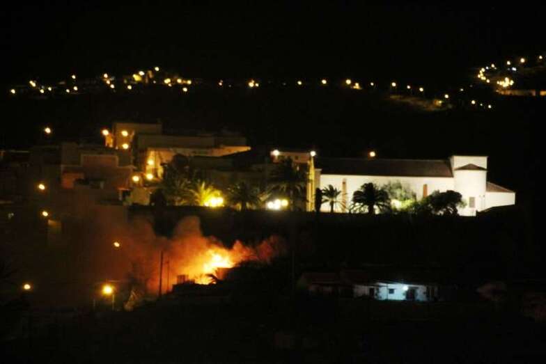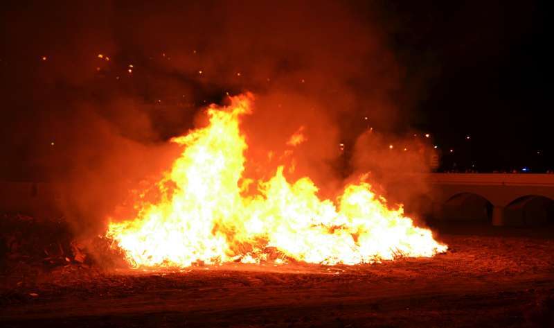 La hoguera está preparada, lenta cae la tarde sobre el horizonte. En las medianías y en la costa se divisan nubes de fogatas lejanas. El olor a quema de rastrojos, madera, ramas y viejos despojos inunda el aire. La hoguera ya está encendida, el crepitar de los materiales amontonados llega con estertores del calor que provocan. Largas e infernales llamaradas colorean las sombras y en la penumbra las formas se magnifican.