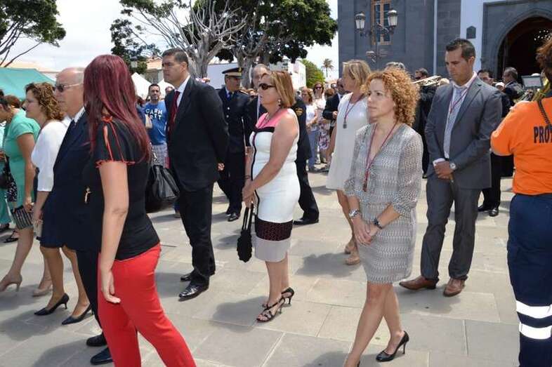San Juan estuvo acompañado durante todo el recorrido por miembros de la nueva Corporación municipal y numerosos feligreses, así como por un grupo de sacerdotes. Entre los asistentes se encontraban la alcaldesa Carmen Hernández; los consejeros insulares Minerva Santana, Francisco Trujillo Marrero y María Isabel Santana Marrero, y varios concejales del Gobierno y de la Oposición.