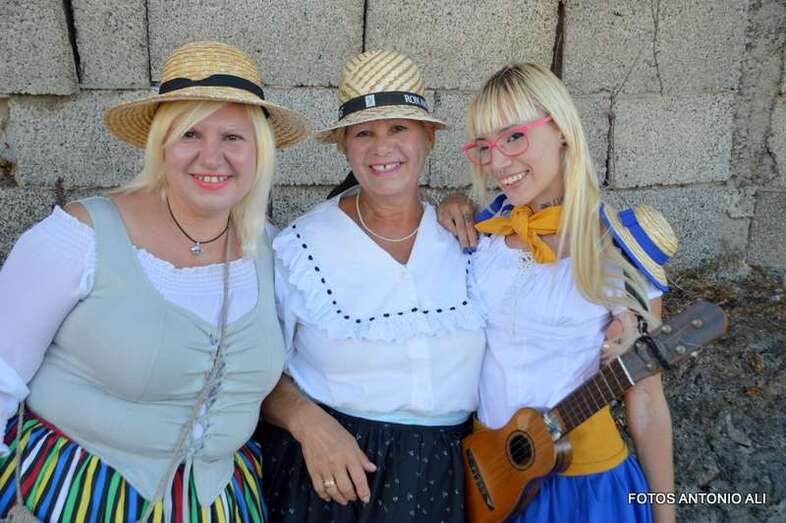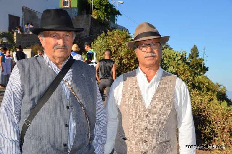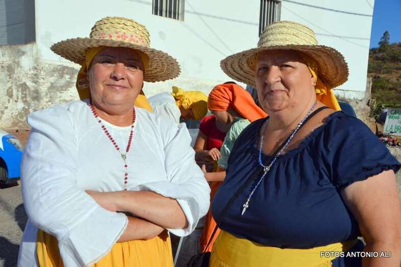Un total de 15 carretas e igual número de agrupaciones folclóricas aportaron colorido y música al desfile popular que partió en la carretera general y finalizó en la plaza con la ofrenda a los pies de los tronos de los patronos, bajo la atenta mirada del párroco de la zona, Fernando Báez, y del concejal de Festejos, Juan Martel, que también quiso compartir este rato de alegría con los residentes en este núcleo cumbrero de Telde.