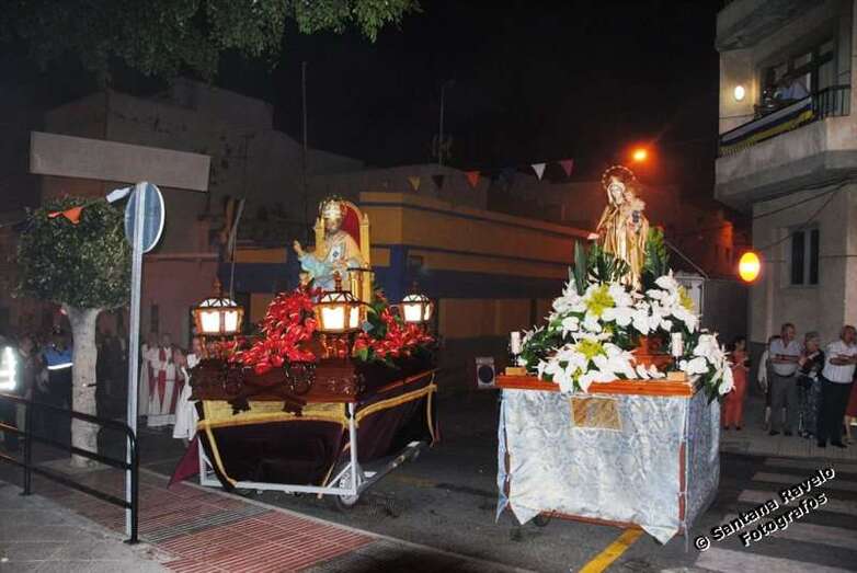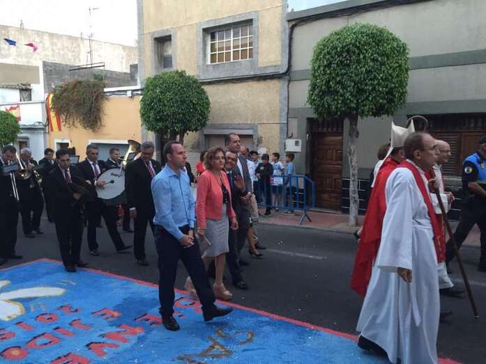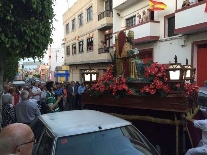Por su parte, este domingo a partir de las 19.30 horas tuvo lugar la misa oficiada por el obispo Francisco Cases y la posterior procesión religiosa por las calles del barrio, con el acompañamiento de feligreses, autoridades públicas y la Banda Municipal de Telde.