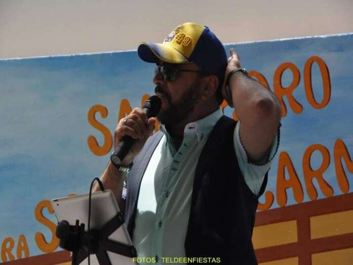 Seguidamente tuvo lugar la actuación estrella del cantante canario Pepe Benavente, que lucía una gorra representativa del ascenso a Primera División de la UD Las Palmas.