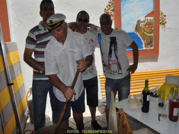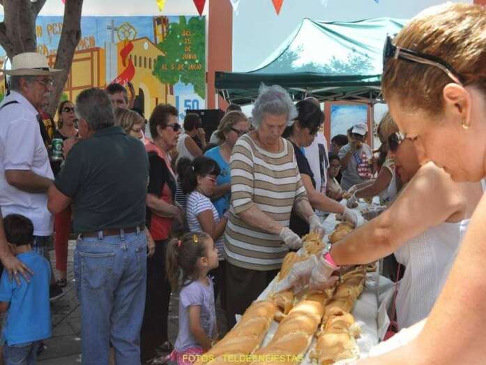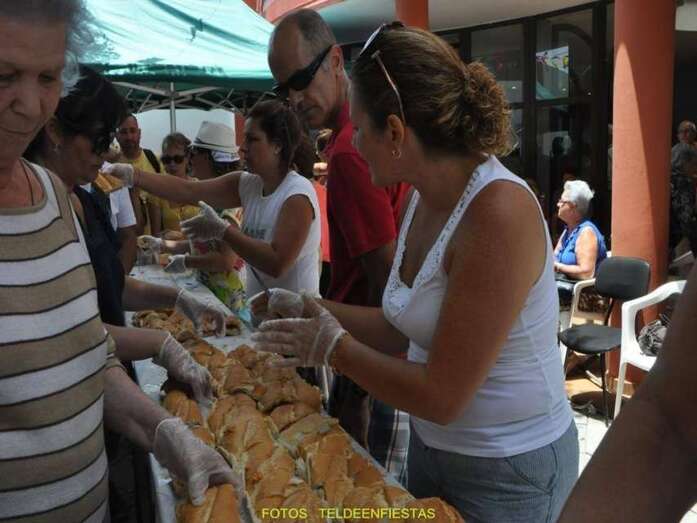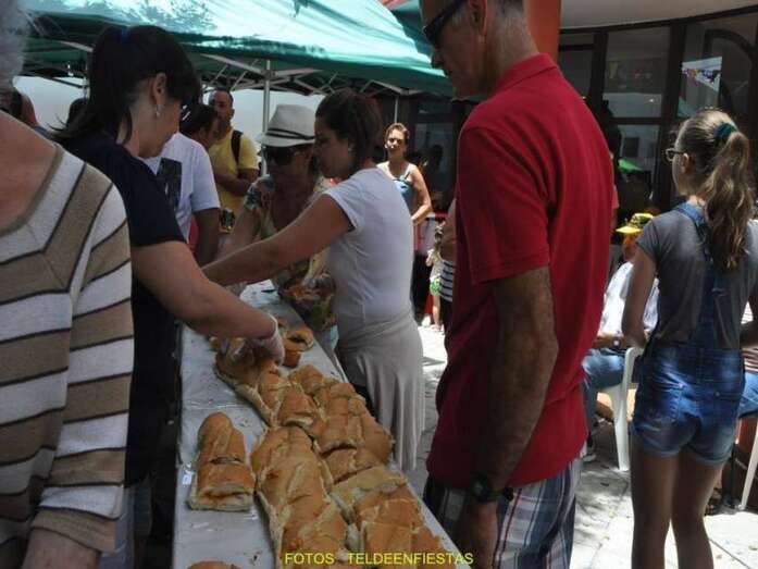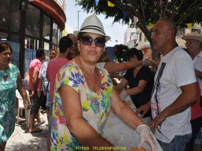 A las 14.00 horas aconteció el reparto del tradicional bocadillo de chorizo y degustación del potaje de berros elaborado por el vecino Antonio El Virula, gran colaborador de las fiestas del barrio de Telde.