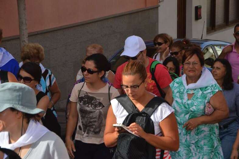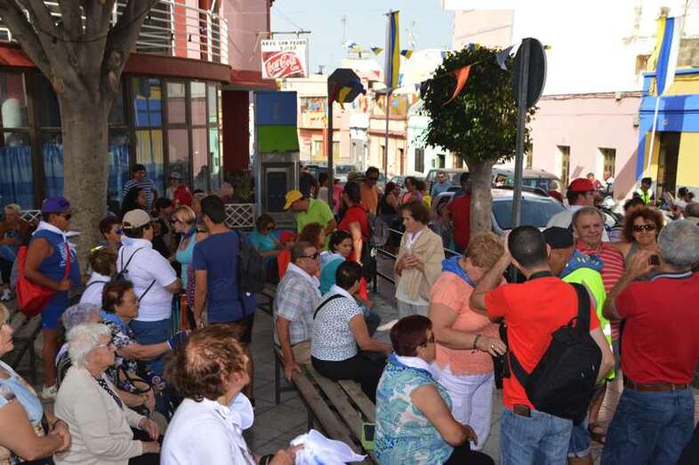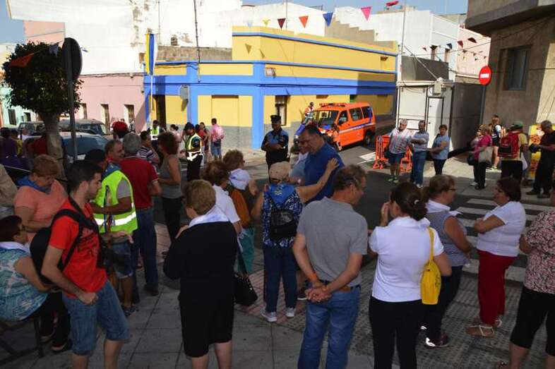 Asimismo, varias decenas de mayores y personas con problemas de movilidad no han querido perderse esta cita cívica y de confraternización vecinal y participan en la misma desde una guagua que les trasladará hasta el templo de Santa Rita.