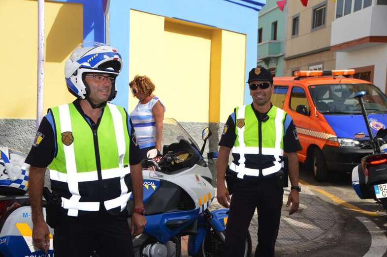 La comitiva que se puso en marcha desde la plaza de El Ejido, es escoltada por un dispositivo compuesto por efectivos de la Policía Local de Telde y la Agrupación de Voluntarios de Protección Civil, además de dos ambulancias, y al que también se incorporaba más tarde la Guardia Civil de Tráfico.