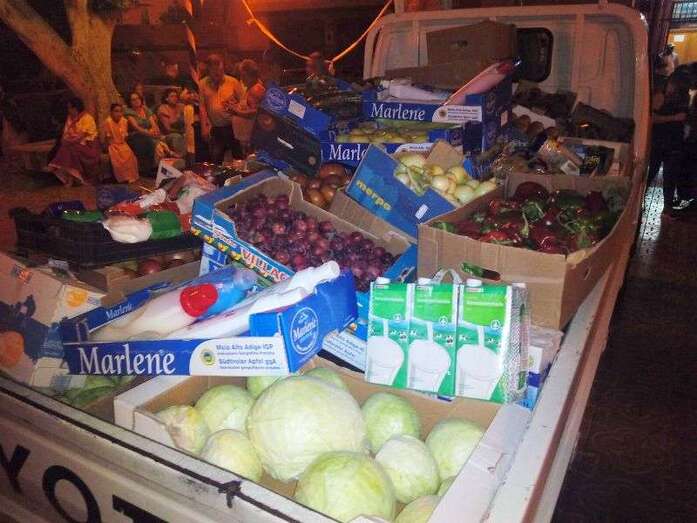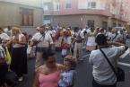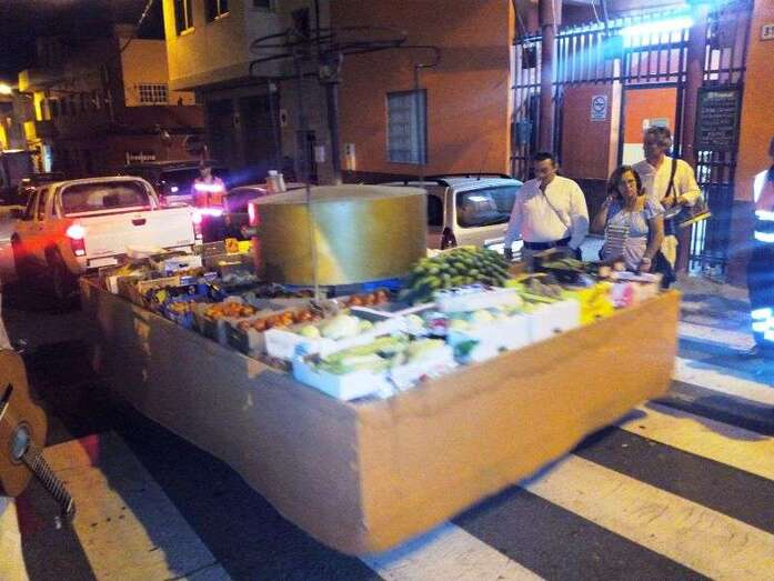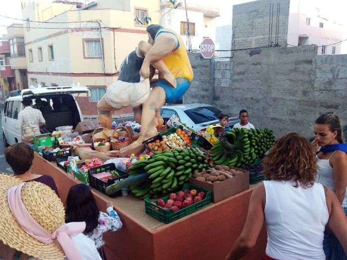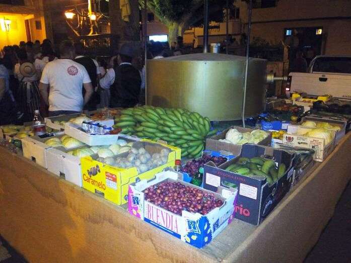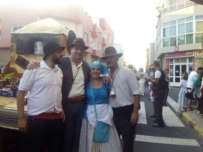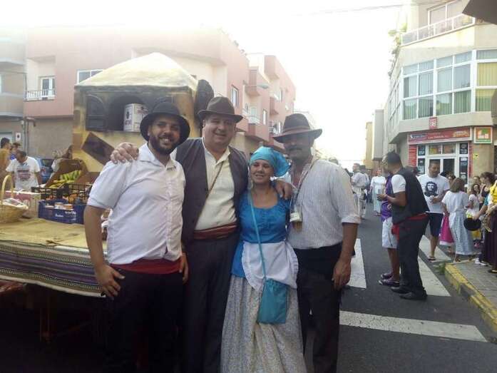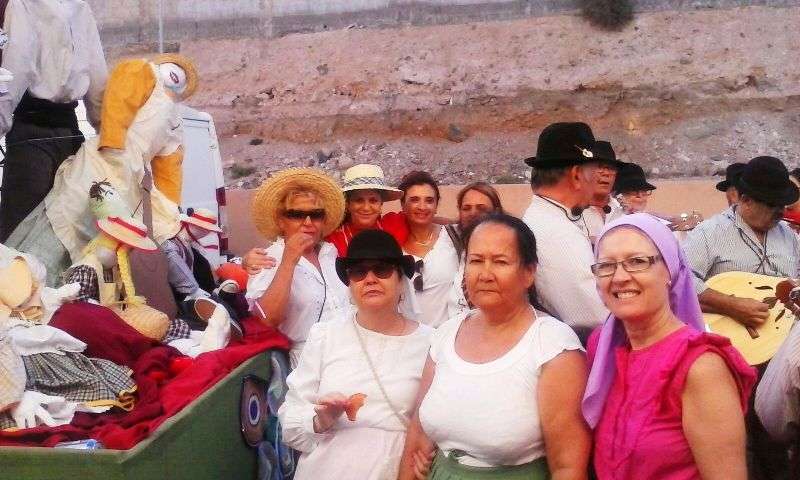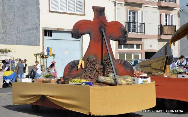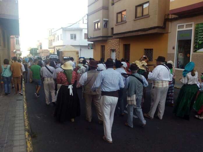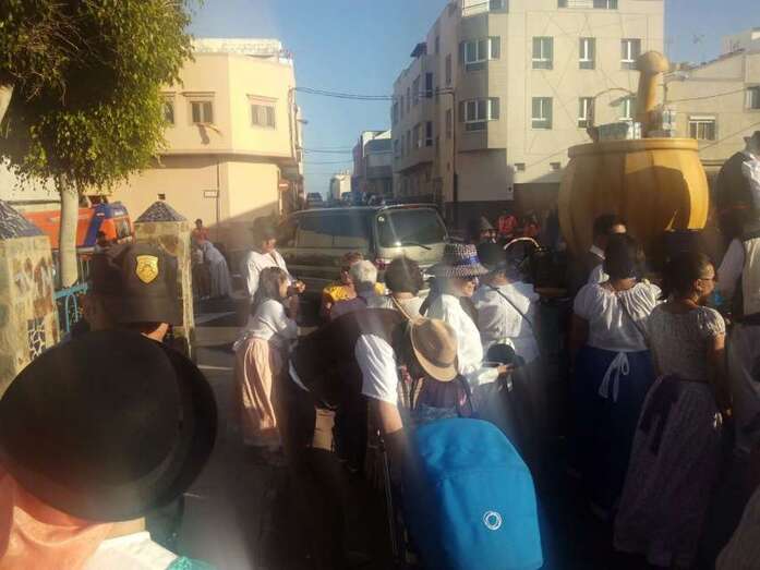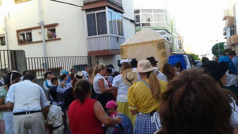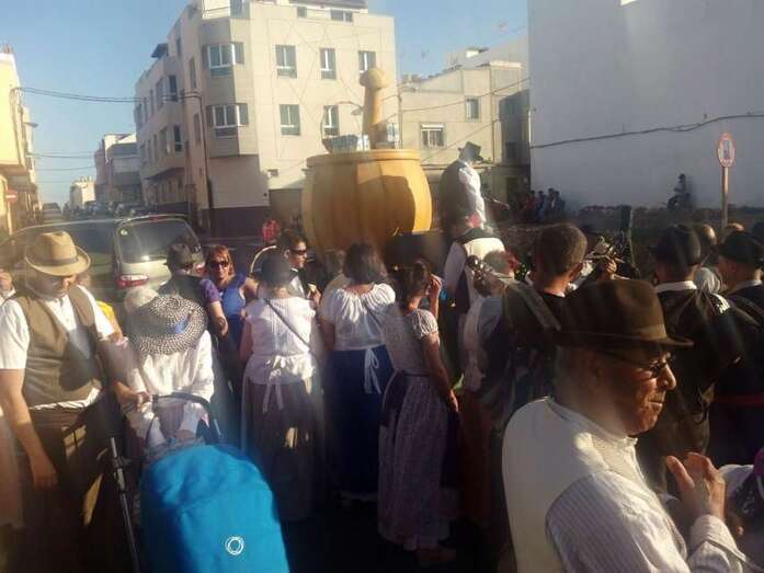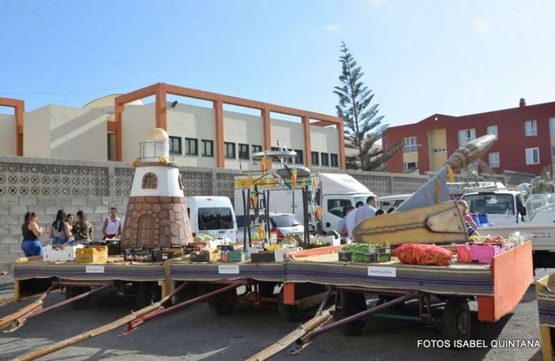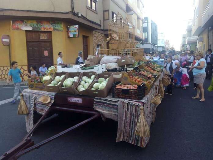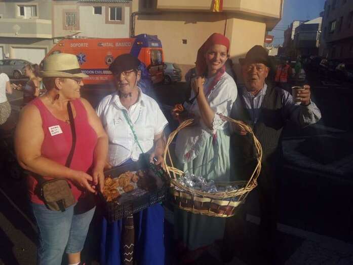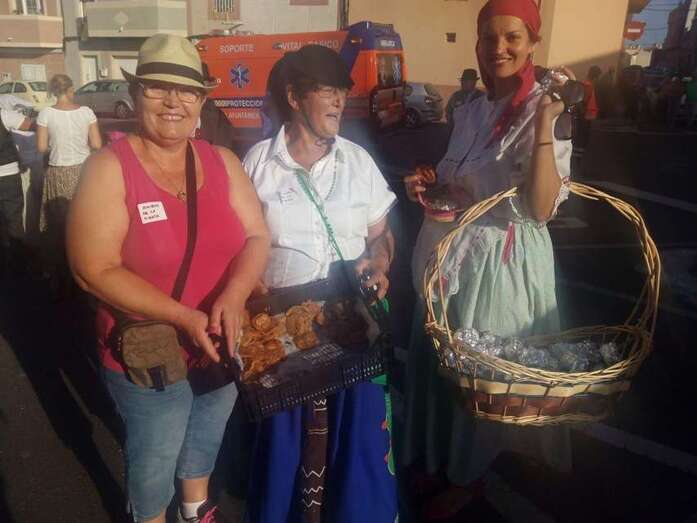 El núcleo más tempraneo en echarse a calle a ofrendar a la Virgen de Lourdes fue El Goro. Lo hizo a partir de las 17.00 horas. Hora y media después los romeros tomaron las calles de los enclaves de Marpequeña y Las Huesas, donde carretas y grupos de música canaria animaron los dos recorridos en honor de la Virgen del Carmen con el reparto entre los asistentes y públicos de productos típicos canarios.