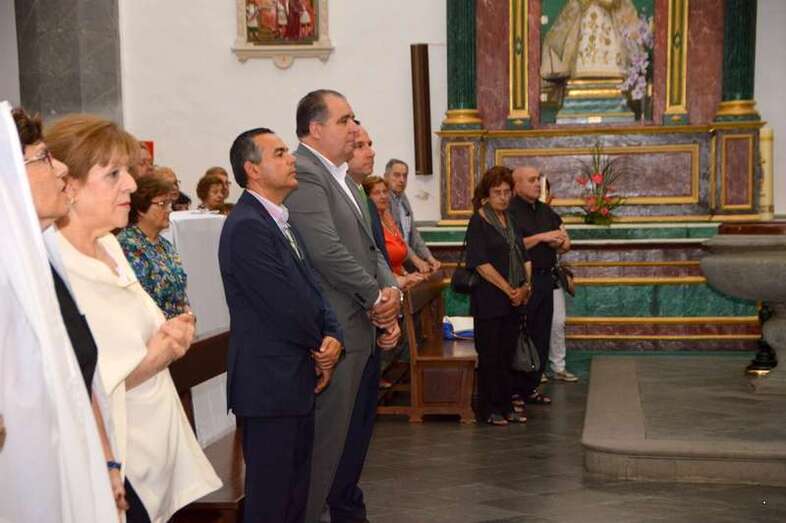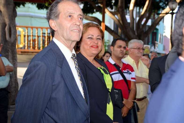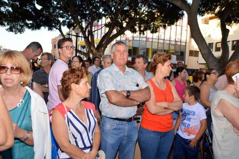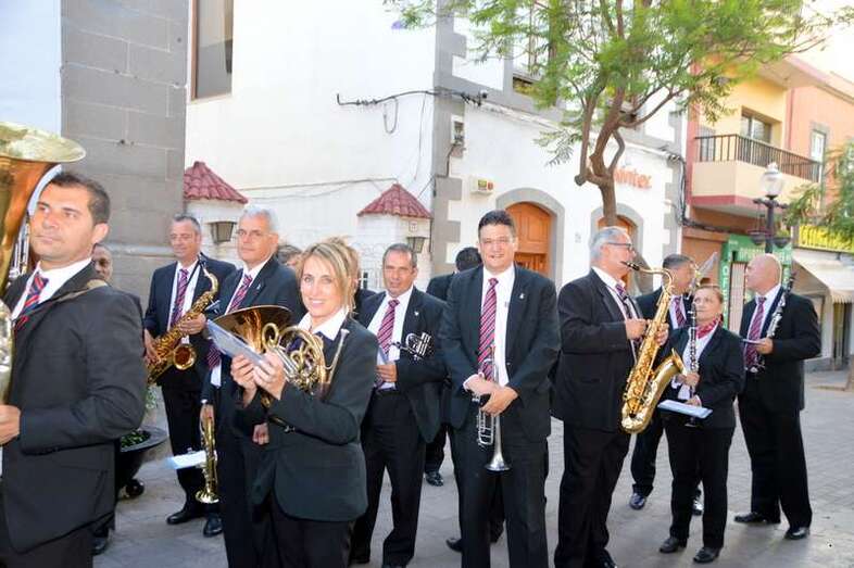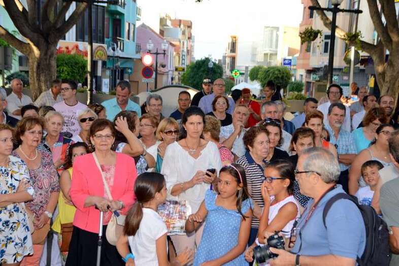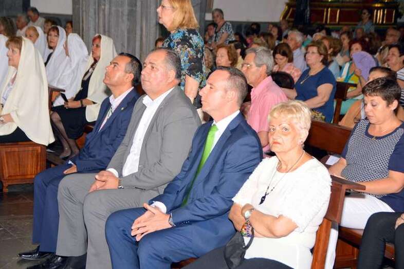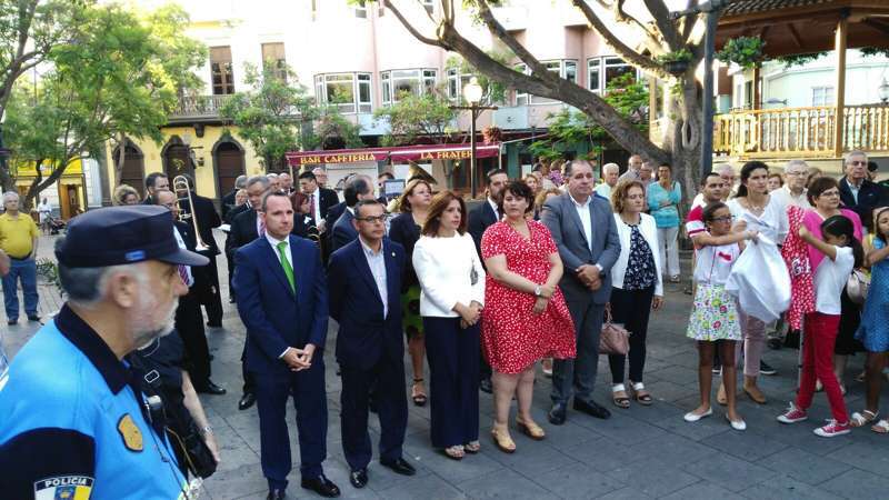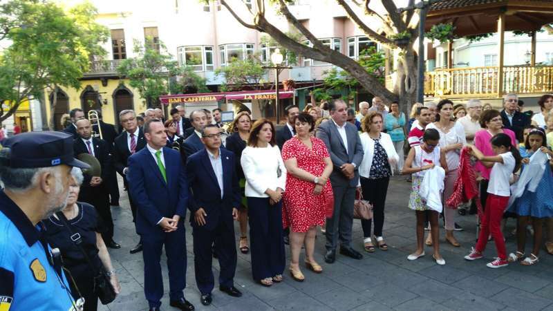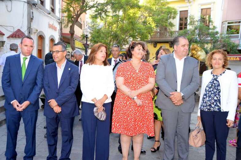 A los pies de la plaza pública, era recibida por cientos de teldenses a los sones de la Banda Municipal de Música, y también con la presencia de una representación de la Corporación municipal, encabezada por la alcaldesa Carmen Hernández y que completaban ediles tanto del grupo de Gobierno como de la oposición.