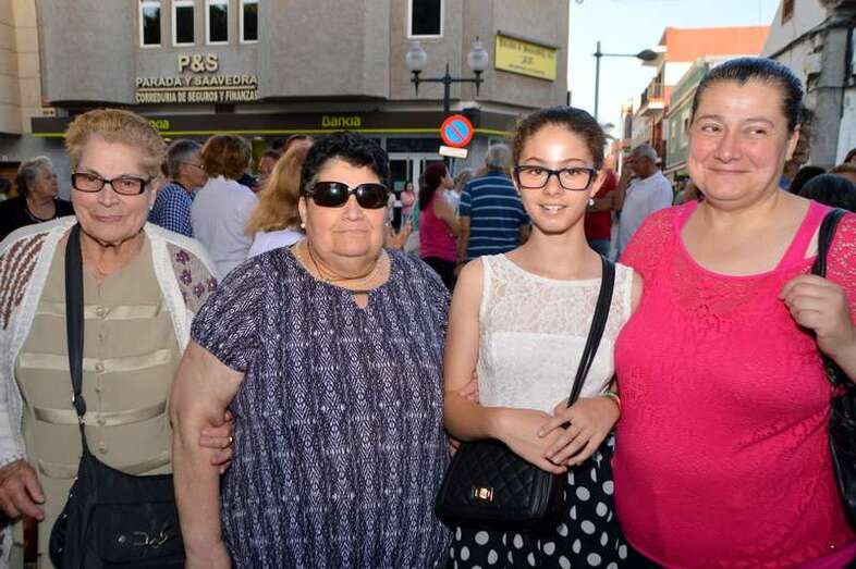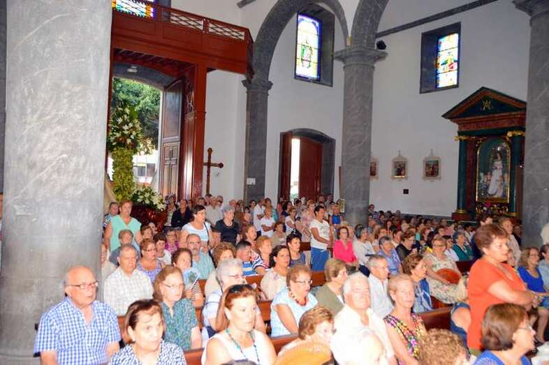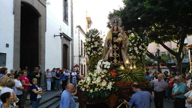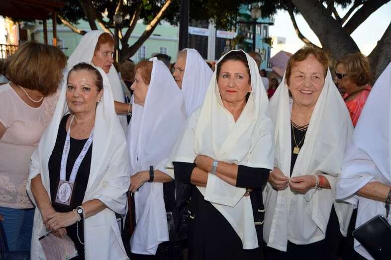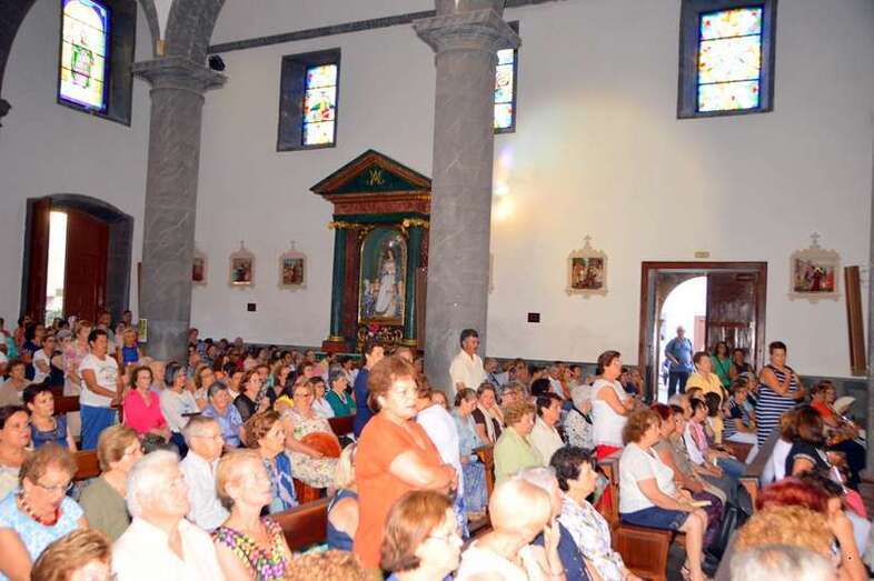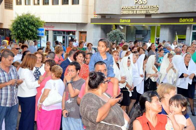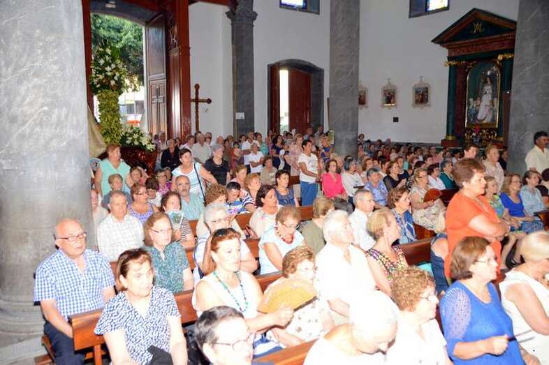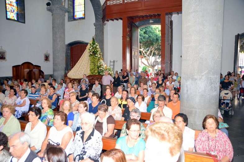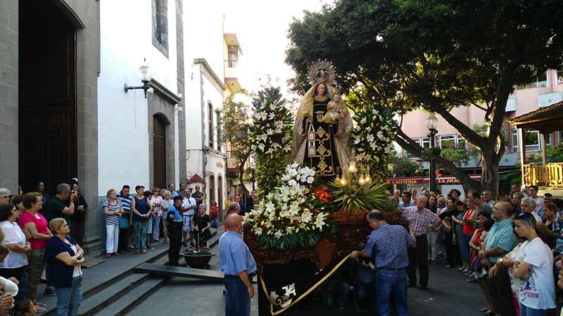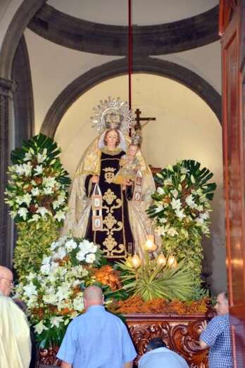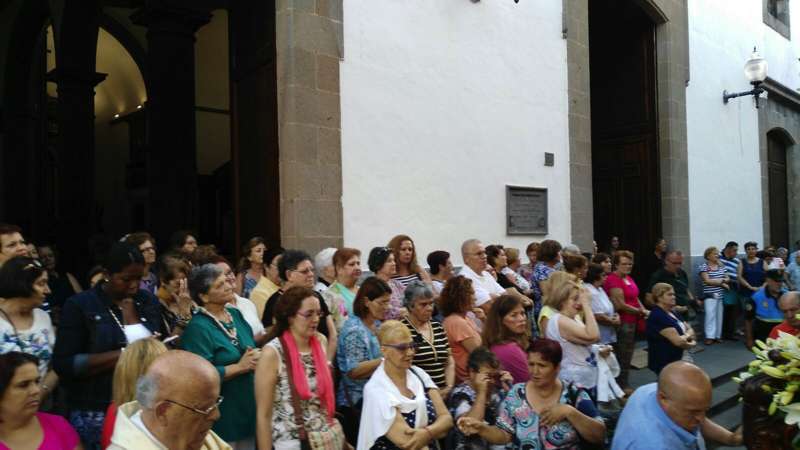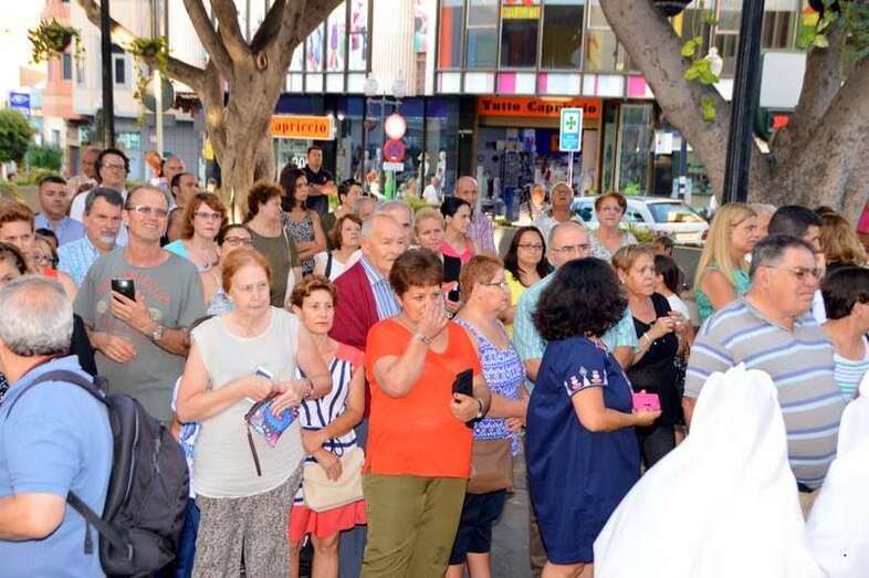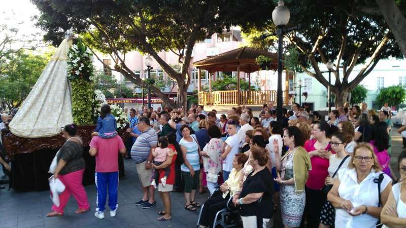 Minutos después, tras completar su recorrido por Juan Diego de la Fuente, Francisco González Díaz, Oriente, María E.Navarro y Rivero Bethencourt, y ser saludada a su paso con varias pealadas de flores, regresaba al templo arropada por los devotos y feligreses.