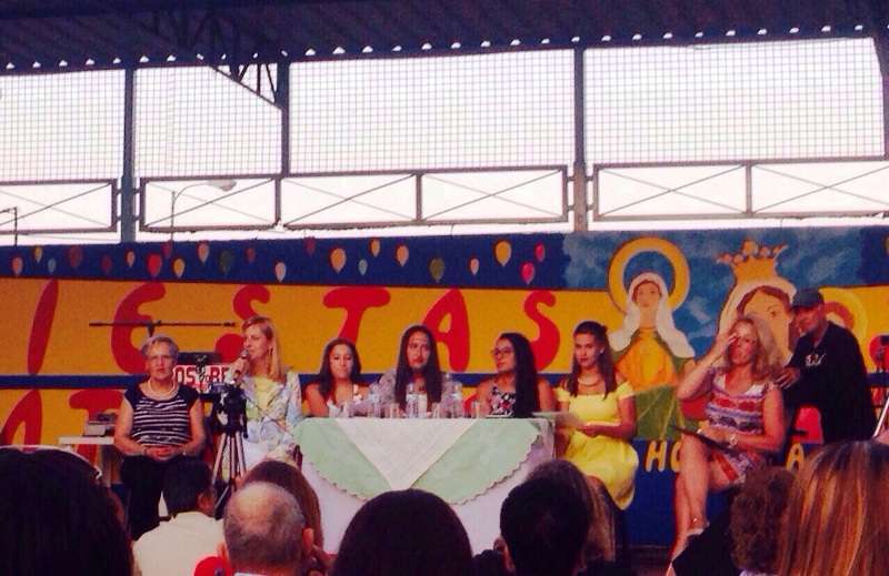 Las pregoneras, Ana María Ramírez, profesora y jefe de Estudios del IES Valle de los Nueve, y las alumnas de la ESO y 1º de Bachillerato, Marta Martel, Veronica Ramírez, Isabel Alemán y Sara Ramos, ofrecieron una visión particular y actual de la intrahistoria del barrio, con alusiones a la vida en torno a la Parroquia, las procesiones, los comercios y los mayores.