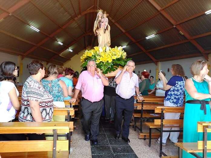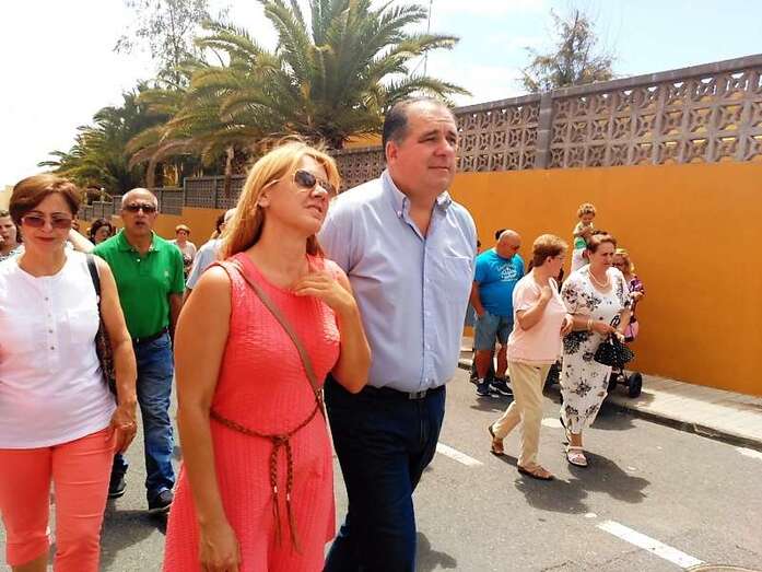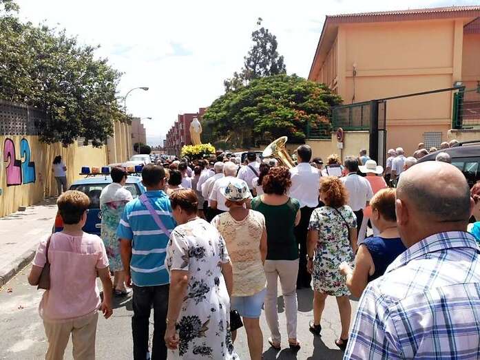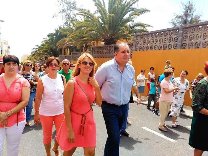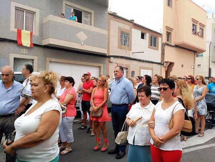 La procesión religiosa hizo el recorrido habitual por las calles del barrio con el acompañamiento de feligreses y autoridades públicas, entre las que se encontraban los ediles del Gobierno Juan Martel, Celeste López y Marta Hernández.