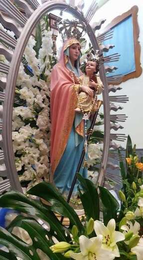 A las 19.00 comenzó la eucaristía que dio paso a la bajada de la imagen religiosa desde el camarín sobre el que descansa el resto del año. Acto seguido se izará la bandera de las fiestas.
