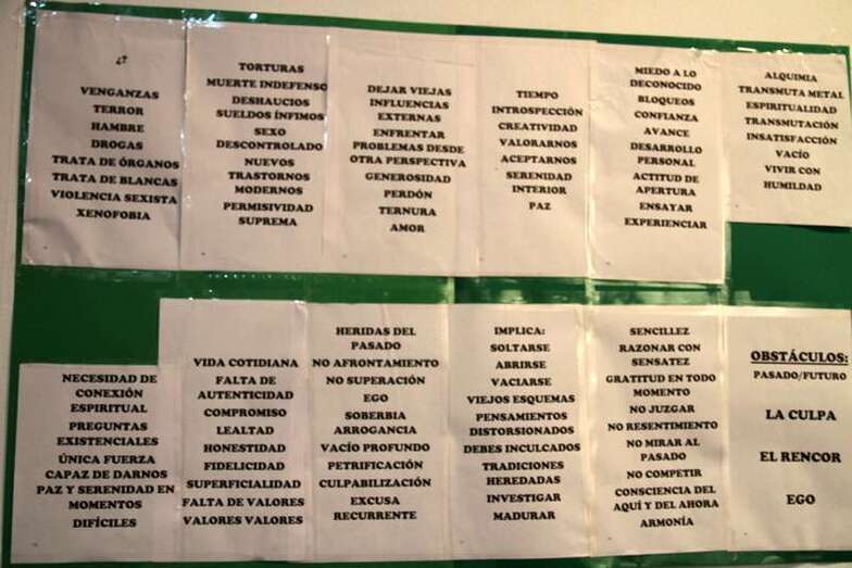 Una interesantísima amplia y documentada exposición de todo lo expuesto por la doctora Barrenengoa, factores que llevan a conductas humanas, causas y consecuencias y caminos para su resolución, que para su mejor comprensión y guía se reflejan en cuadros a modo de síntesis se en murales para su lectura en conceptos como el sentido de la vida, frágil, enfermedad, desgaste energético, cansancio del alma, religión, espiritualidad, interiorización errónea, nuevas realidades, etc. La intervención finaliza con una rueda de preguntas como su intervención en el juicio del terrible caso del falso saolín y su experiencia vivida ante la actitud de un monstruo de maldad y crueldad que en dicho juicio hizo llorar hasta al propio jurado. A preguntas de la práctica del Chikung, informa de esta técnica oriental milenaria para mejorar la salud física y emocional, disciplina de ejercicios prácticos para liberar el cuerpo de bloqueos energéticos que causan mala salud, tensión y estrés.