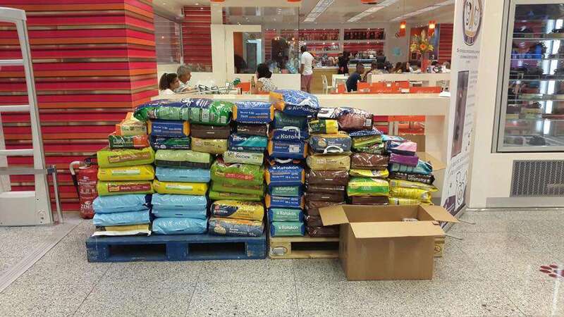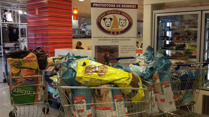 Telde.- El fin de semana pasado, se realizó en Hipercor Siete Palmas una recogida de alimentos para animales, en colaboración con la Protectora de Animales Zidana Animales Canarias, ubicada en Telde.