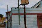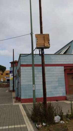 Llama también la atención la peculiar tapa de cartones de un cuadro eléctrico instalado en un poste colocado en la zona.