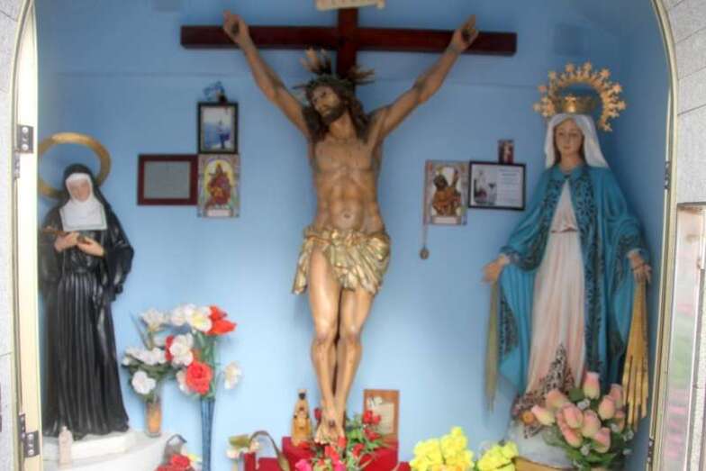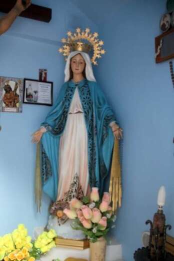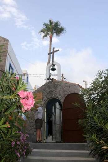 Hablar en un estado laico aconfesional respetando la religión y el motivo, sino principal, para estar todos juntos en estas fiestas y compartir la alegría en este verano de esta zona costera teldense de Tufia, dedicado a la Virgen María bajo la advocación de La Milagrosa. En la Francia postrevolucionaria a principios del siglo XIX, una monja de San Vicente de Paul tuvo una visión donde una mujer vestido de blanco y celeste que despedía de sus manos unos rayos de luz se acercó a ella para hablarle del cielo, del infierno y de la capacidad que tenía de hacer milagros. Nuestra Señora de los Milagros se convirtió en la Virgen Milagrosa que es la que se venera aquí en Tufia desde el año 1976. En esa ermita, pequeño espacio religioso que dejamos al llegar hasta este lugar al pie de la playa, me fijo en que está la imagen de un crucificado, imágenes de la Virgen de Montserrat, San Juan de Dios y de Santa Rita.