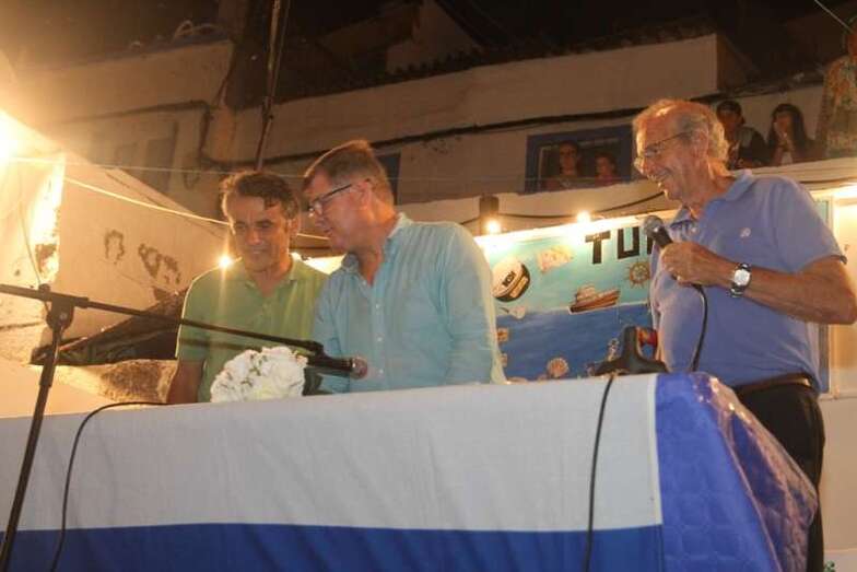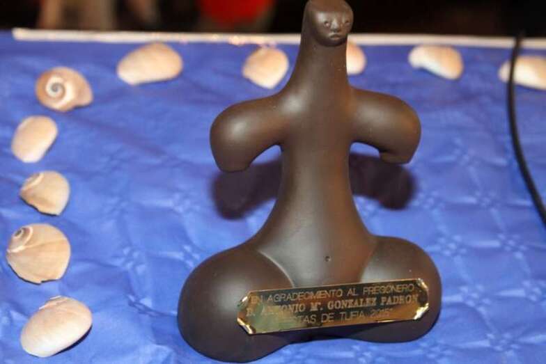 El profesor y biólogo Fernando Báez Vega, secretario del colectivo ciudadano de Tufia, hizo una breve reseña biográfica del pregonero, quien fue obsequiado con una figura de Tara por su participación en la edición de las fiestas de este año.