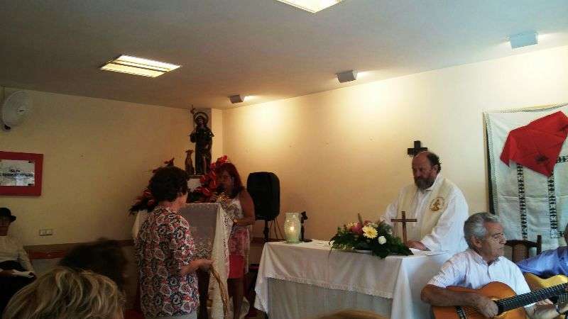 Tras la misa, los asistentes ofrendaron al santo con alimentos no perecederos que el colectivo repartirá entre las familias más necesitadas de la zona.