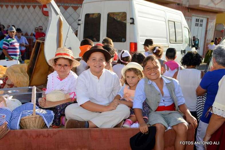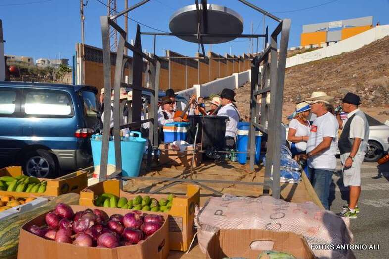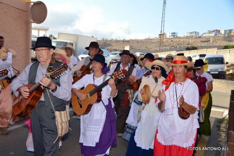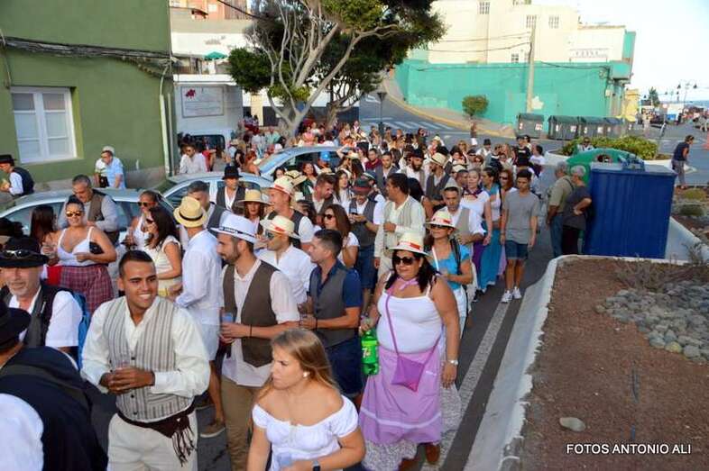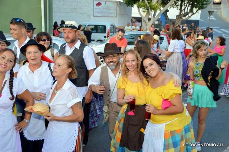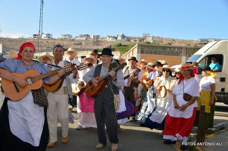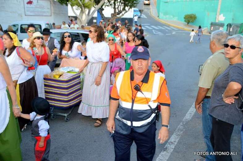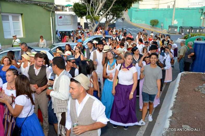 Telde.- Con una afluencia algo más floja que en ediciones anteriores se celebró esta tarde-noche la romería de Melenara. Unas 400 personas de todas las edades se echaron a la calle para participar en el animado desfile popular que discurrió entre este núcleo y Salinetas para terminar en la plaza pública de Clavellinas con la ofrenda ante las imágenes de los patronos Santo Cura de Ars y  la Virgen del Carmen de productos de la tierra y un baile de taifas.