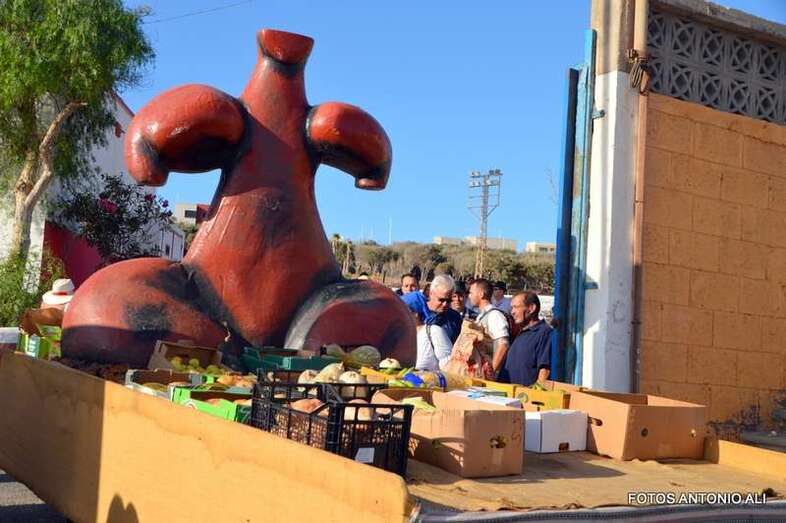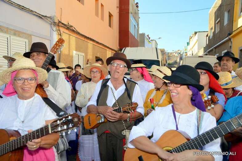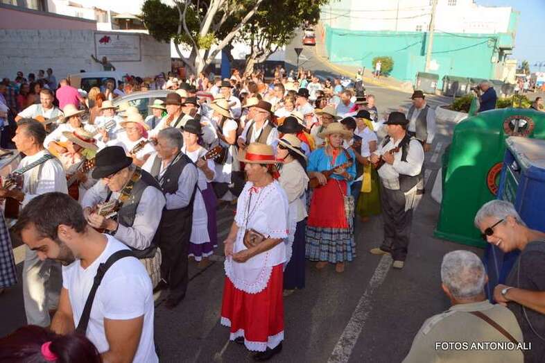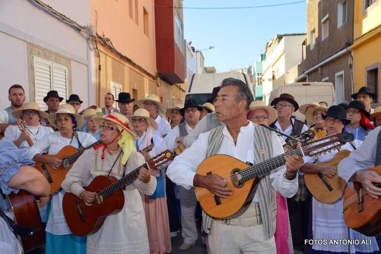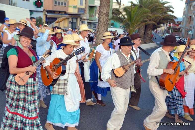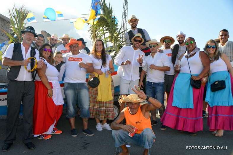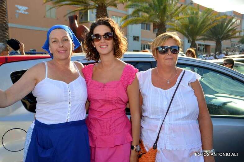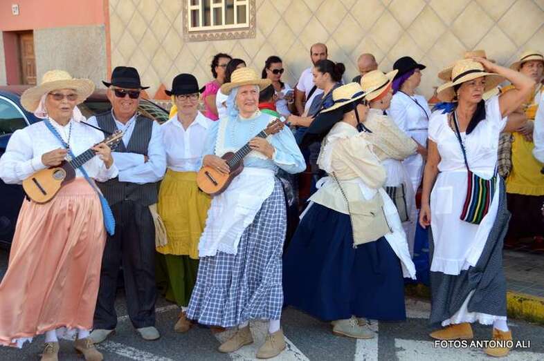 Telde.- Con una afluencia algo más floja que en ediciones anteriores se celebró esta tarde-noche la romería de Melenara. Unas 400 personas de todas las edades se echaron a la calle para participar en el animado desfile popular que discurrió entre este núcleo y Salinetas para terminar en la plaza pública de Clavellinas con la ofrenda ante las imágenes de los patronos Santo Cura de Ars y  la Virgen del Carmen de productos de la tierra y un baile de taifas.
