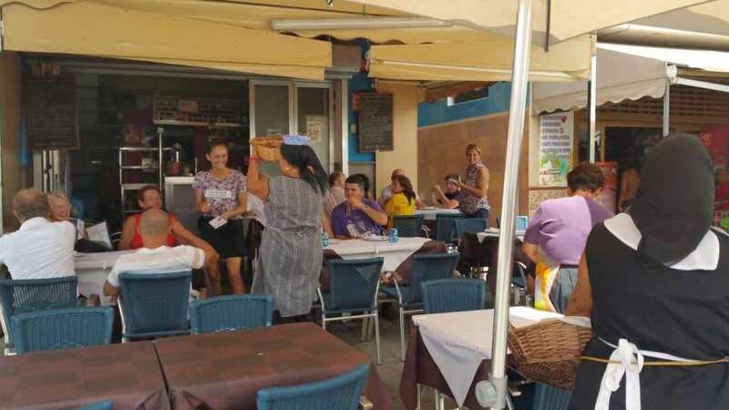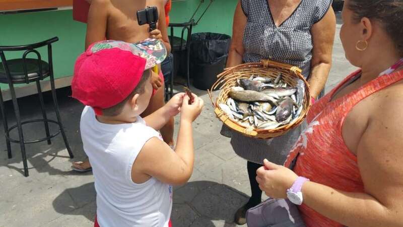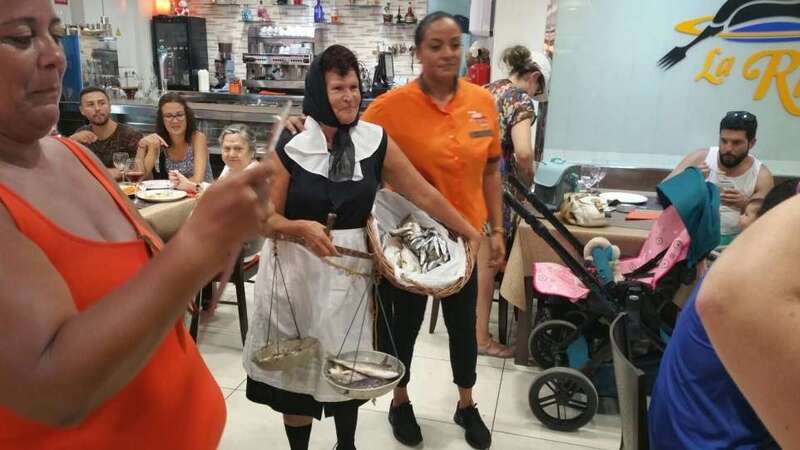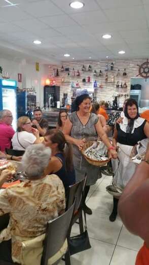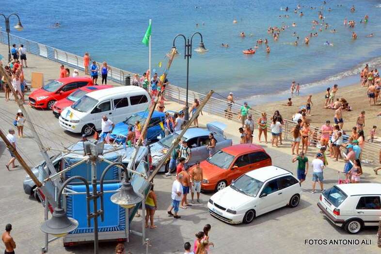 A partir del mediodía, el antiguo espigón del muelle ofreció una exposición de coches Ford y tuneados que concitó el interés de numerosas personas y desde las 13.00 horas la representación en una playa llena de bañistas por vecinas de la zona de Las vendedoras de pescao, una escenificación que rememora el trabajo que, en la década de los años 50, realizaban a orillas del mar las humildes esposas de los pescadores de la zona, vendiendo por las calles y casas lo que ellos pescaban, o echando ellas mismas el chinchorro.