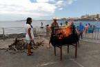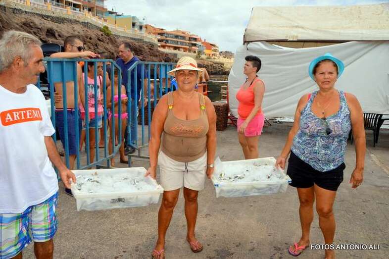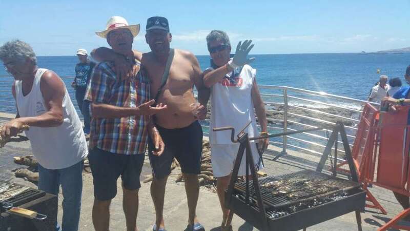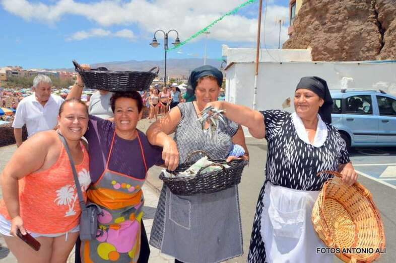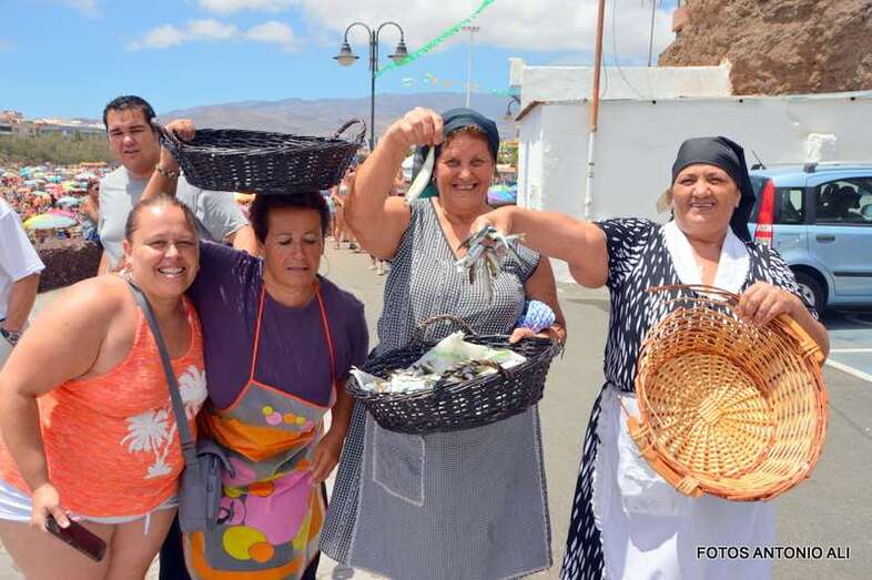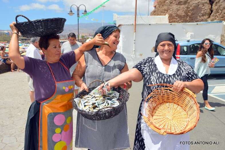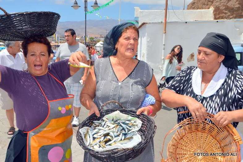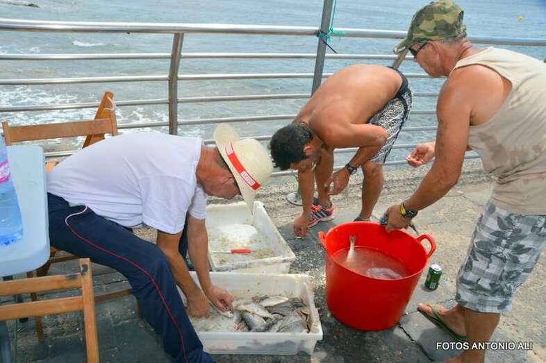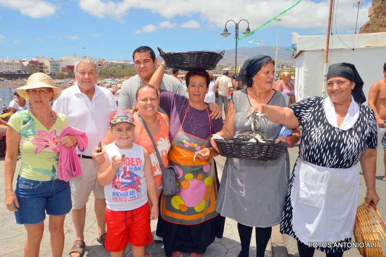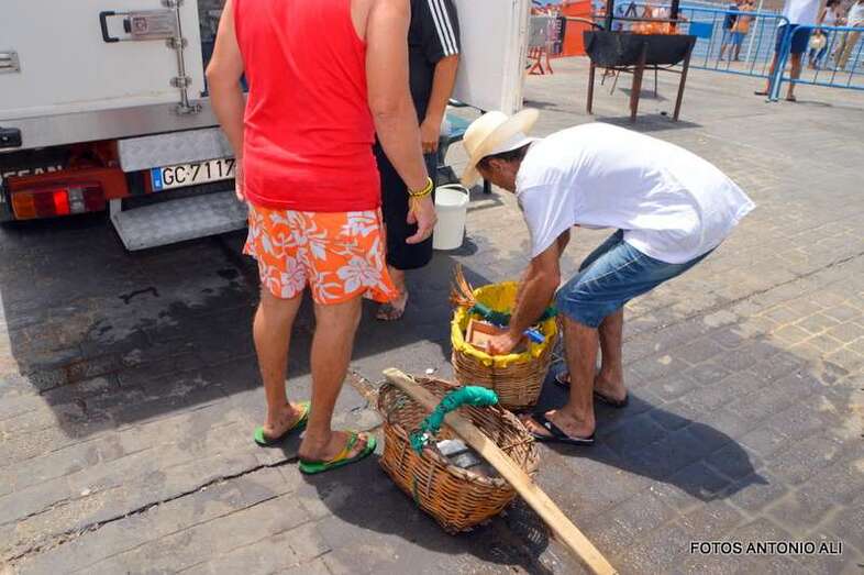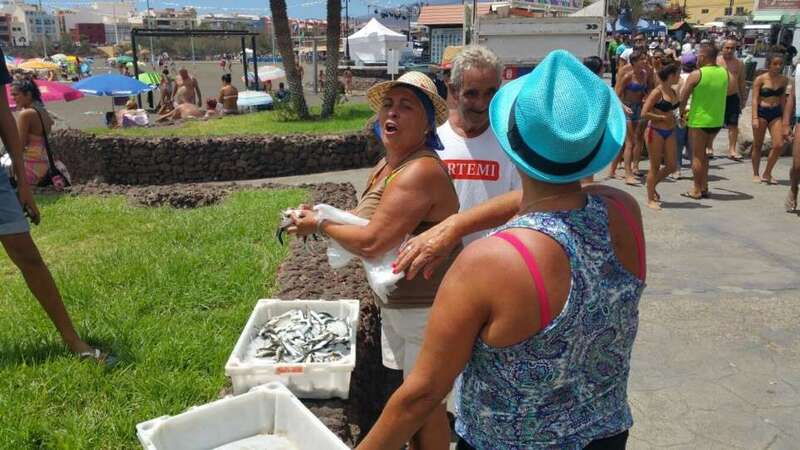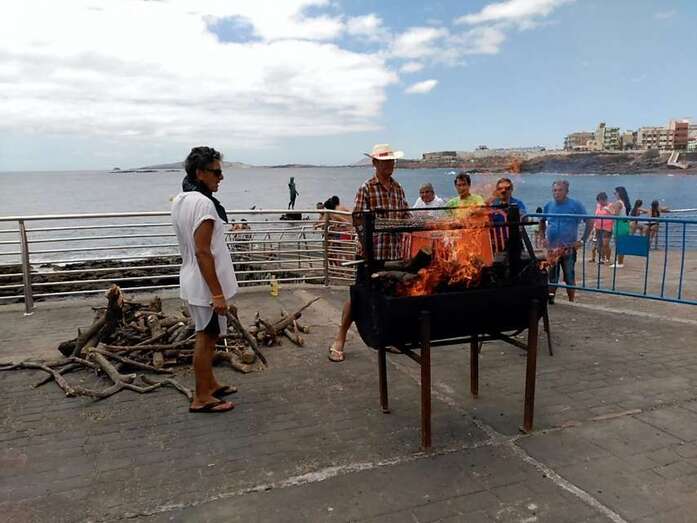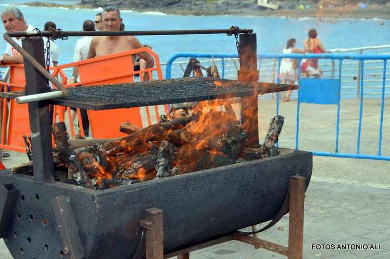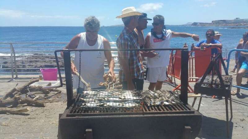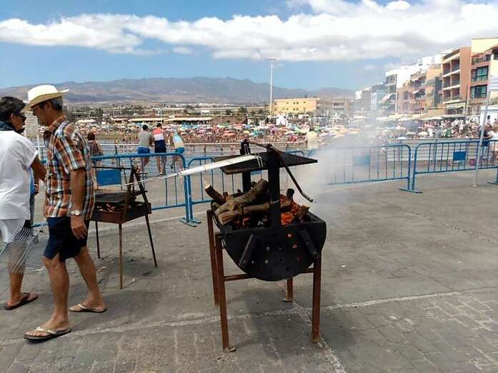 A las 14.00 horas, el muelle volvió a ser el epicentro de la actividad festiva con una gran asadero popular de más de 100 kilos de sardinas. A las 15.00 horas comenzaba la verbena del solajero en la misma playa a cargo de Yeray Socorro, que finalizaría bien entrada la tarde.