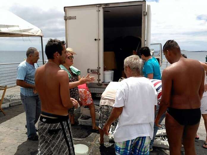 Las vendedoras de pescado fresco, minutos después de la escenificación (Foto Antonio Alí) Las vendedoras de pescado fresco, minutos después de la escenificación (Foto Antonio Alí)
