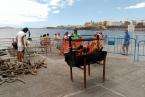 A las 10.00 horas, una embarcación a remo de los pescadores con sede en el muelle de Taliarte arribaba a la playa de Melenara, donde luego sus ocupantes, marinos de la zona, mostrarían el arte de pesca del chinchorro ya en desuso.