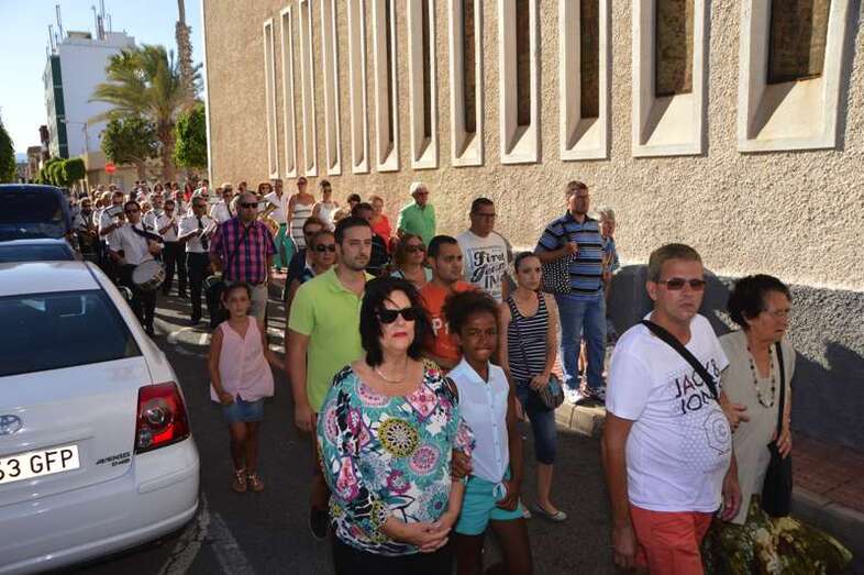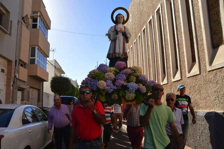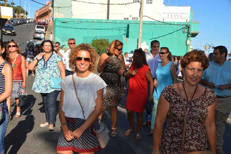 El desfile religioso se inició con los tronos portados a hombro por vecinos de Melenara y salió del templo de Clavellinas pasadas las 18.00 horas. A la puerta del templo, las imágenes eran recibidas por la feligresía y por una representación de las autoridades municipales con la alcaldesa Carmen Hernández al frente.