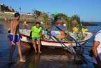 Más de 30 minutos después, los barcos engalanados con ramas de palmeras y banderolas arribaban en Salinetas, donde los tronos fueron sacados a tierra, operación que resultó bastante sencilla ya que el mar no presentaba dificultades para la tarea.