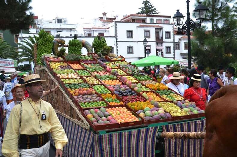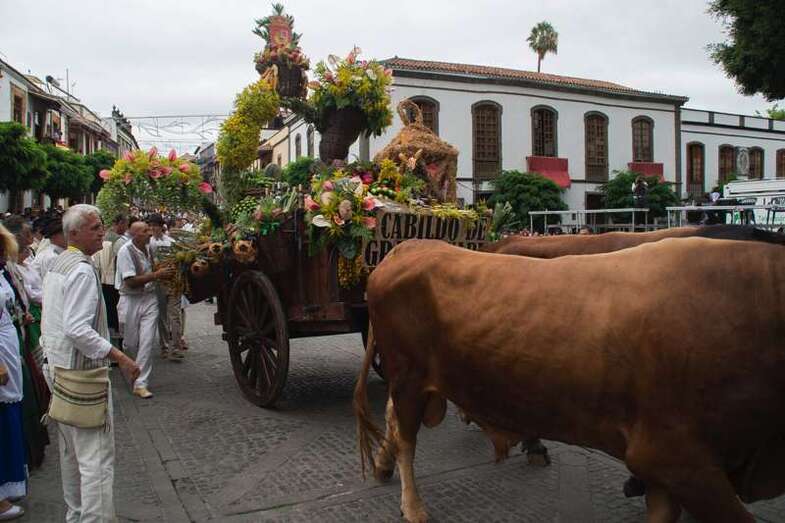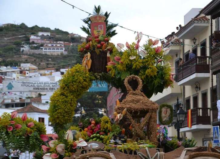 Telde.- Con una bella carreta que aúna mar y tierra y que homenajea, al mismo tiempo, a los agricultores y pescadores del municipio. Así ha acudido este lunes la ciudad de Telde a la Villa Mariana de Teror para presentar sus respetos a la Virgen del Pino, patrona de la Diócesis de Canarias, en su tradicional romería-ofrenda.