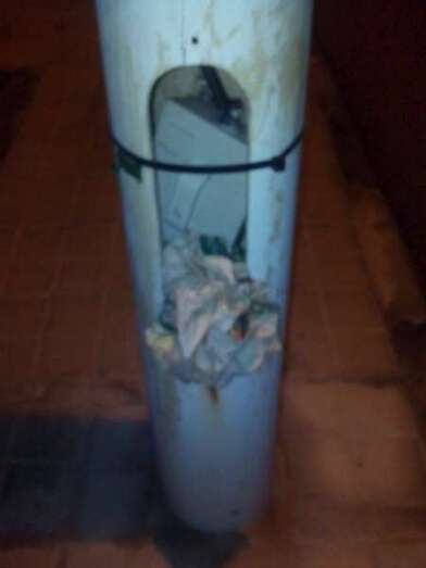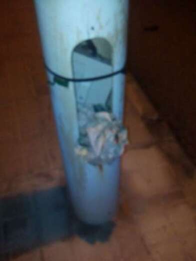 Imagen de una de las farolas sin tapa (Foto TA) Imagen de una de las farolas sin tapa (Foto TA)
