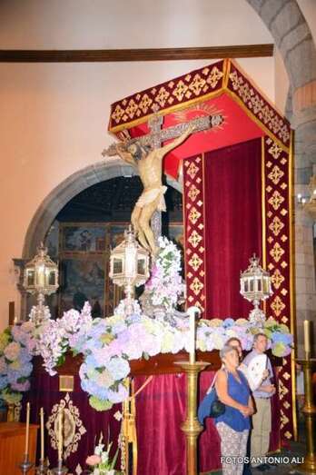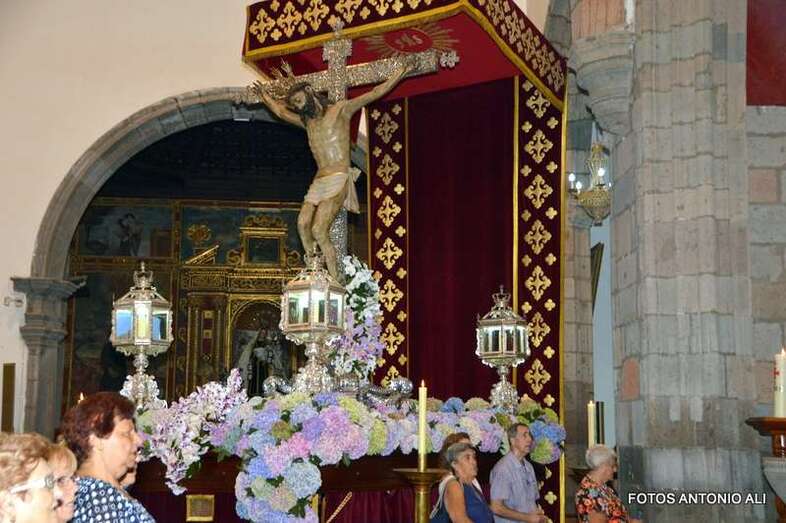 Telde.- Cuando el reloj de la Basílica de San Juan marcaba las 20.20 horas de este lunes, la venerada imagen del Cristo de Telde enfiló el pórtico principal del templo matriz de la ciudad para mezclarse con los fieles y recorrer en procesión las principales calles del casco histórico de la ciudad.