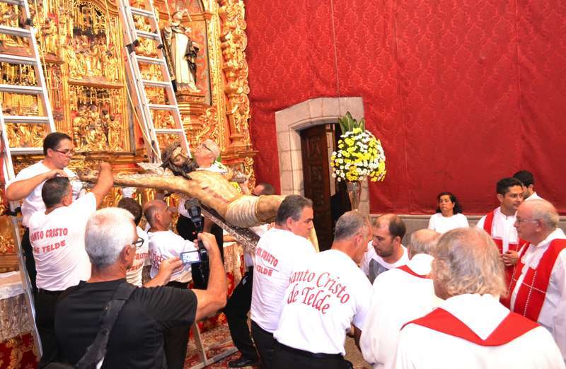 La ciudad de Telde se despidió un año más de su querido Santo Cristo tras unas fiestas de carácter estrictamente religioso que comenzaron el pasado día 11, víspera de la bajada de la imagen, con el pregón que ofreció el sacerdote salesiano José Carmelo Pulido.