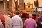 La imagen religiosa retornó esta noche a su hornacina en el Altar Mayor de la Basílica de San Juan
